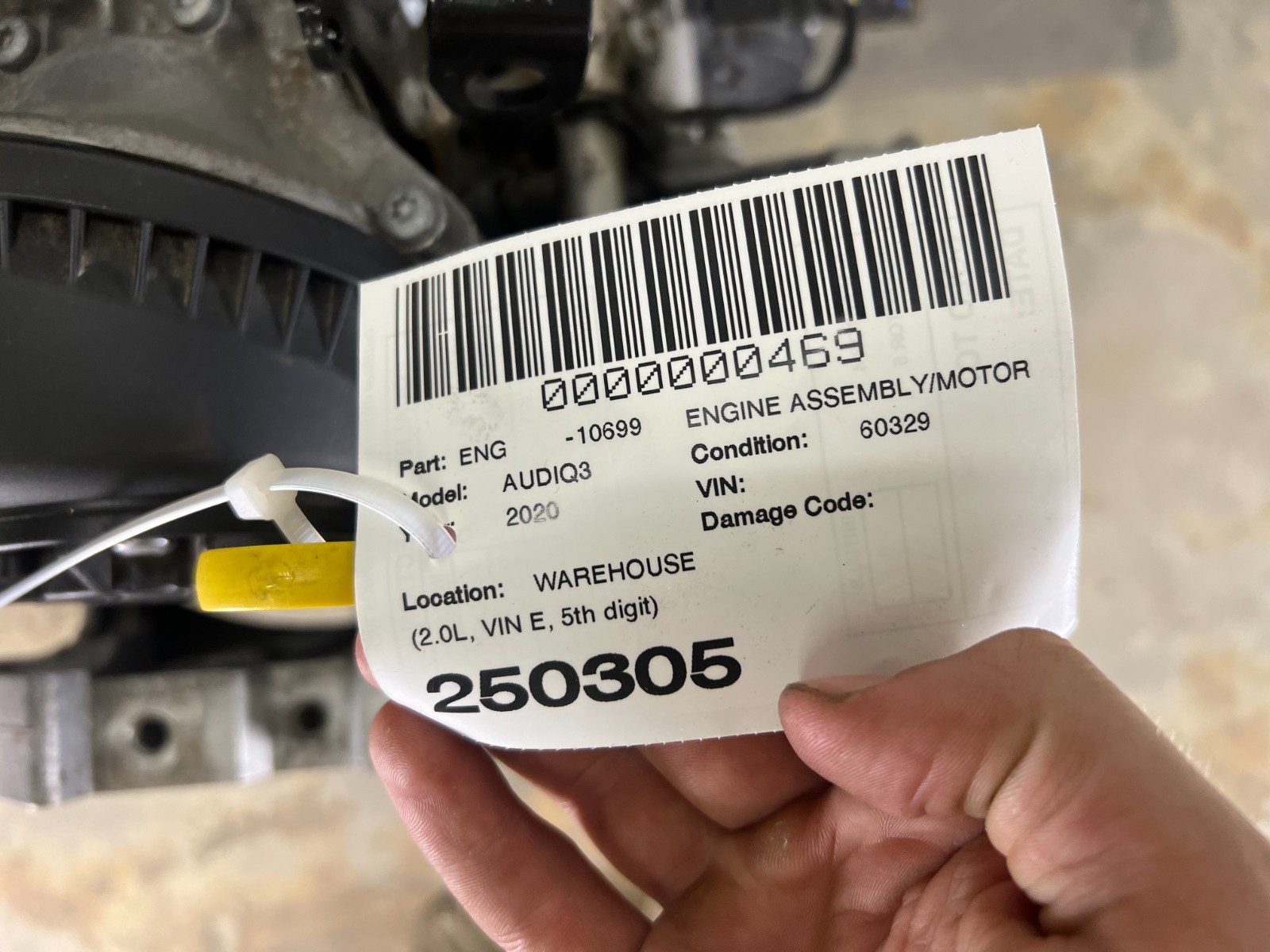 **Freight Rates** The prices provided for freight delivery are approximate. Contact us for actual delivery cost. To speed up the process, please provide: 1) The exact delivery address w/ zip code 2) Address - commercial (provide the business/company name) or residential 3) Do you have a forklift or a dock at the location. **Approximate Freight Delivery Cost** 1. Alabama, Arkansas, Florida, Georgia, Kentucky, Louisiana, Mississippi, North Carolina, Oklahoma, South Carolina, Tennessee, Texas, Virginia, West Virginia - Commercial Address $250 , Residential (Home) Address $400 2. Illinois, Indiana, Iowa, Maine, Maryland, Massachusetts, Michigan, Minnesota, Missouri, New Hampshire, New Jersey, Ohio, Pennsylvania, Rhode Island, Vermont, Wisconsin - Commercial Address $350 , Residential (Home) Address $500 3. Arizona, California, Colorado, Connecticut, Delaware, Idaho, Kansas, Nevada, Nebraska, New Mexico, Utah - Commercial Address $450 , Residential (Home) Address $600 4. Montana,New York,North Dakota,Oregon,South Dakota,Washington,Wyoming - Commercial Address $500 , Residential (Home) Address $650 **Donor vehicle info:** 2020 AUDI Q3 PREMIUM QUATTRO **VIN :****WA1AECF37L1054588** Body style: 4 Door Sport Utility Engine: 2.0 turbo Transmission: Automatic AWD All Wheel Drive Exterior color: Ibis White LY9C Interior color: Beige Odo: 60 329 mi **Good condition, see photos, used.** Comes with everything you see in pictures!! Complete assembly. **Compatibility and fitment:** It is a buyer's responsibility to verify item compatibility and fitment. Use the part number, pictures and description provided to make sure this part fits your vehicle. Please, do your research before buying, NOT after