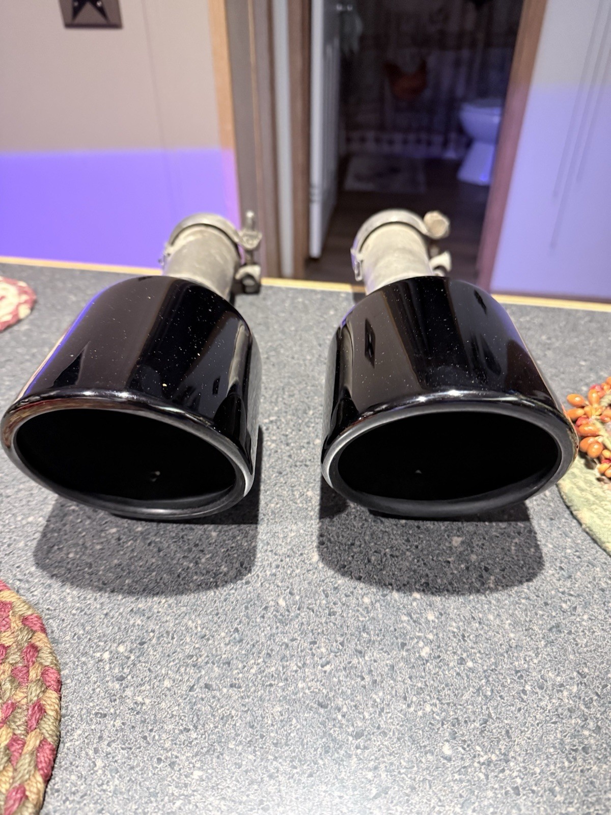 **The product is a set of black chrome exhaust tips tail pipes designed for 2019-2025 Dodge Ram 1500 trucks. These OEM Mopar tips are direct replacements with a round shape and a 3.75 inch outlet diameter. Made of stainless steel, the tips feature a double wall design and come with a 2.5 inch inlet diameter and a 13 inch length. They are designed for easy installation with a clamp-on mounting style and are finished in black chrome. The product includes pipes and is suitable for rear placement on the vehicle. Please note that these pipes were taken off a truck and do have normal wear for their age , please see pictures as they are the actual tips you will receive, thanks**