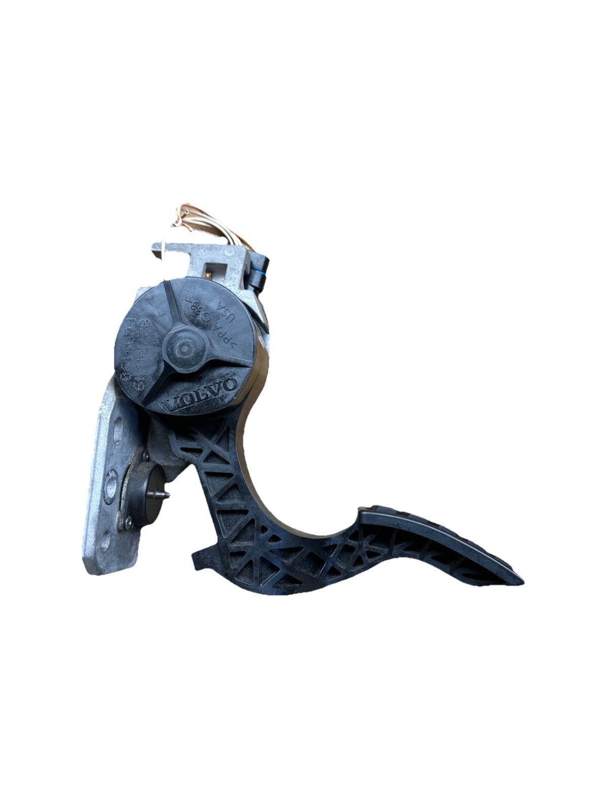 The product is a genuine OEM Volvo VNL throttle pedal assembly, part number 82734049. This assembly includes the accelerator pedal in black color. It is designed specifically for Volvo trucks from model years 2019 to 2024. This high-quality part is essential for controlling the speed and performance of the vehicle, ensuring optimal operation and safety on the road.