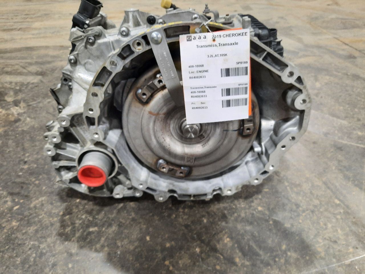 Item Description **6 MONTH WARRANTY!! 60 DAY NO HASSLE RETURNS!!** **This for a USED OEM Transmission/Transaxle Assembly pulled from a 2019 CHEROKEE with 105000 actual miles on it.** **Here are our part notes about this specific part:** **3.2L,AT,105K** **Our Part #: 400-10068, 4082633** **Our Stock#: 5P0180** Please see the fitment section below to make sure this will fit your vehicle. Pay special attention to any options listed!!! In some cases, it may only fit vehicle with certain options or specific ID#s as listed below. **CHEROKEE 17-18 AT; 3.2L, AWD (single speed transfer case), 3.25 ratio** **CHEROKEE 19 (AT), 3.2L, AWD (single speed transfer case), 3.25 ratio** Whats Included? Whats Included? FAQ/ Help Shipping Payment Returns/Warranty #### Whats Included? ``` Here is a short description of what will generally be included with your item. If you would like more information or are unsure if something will come with your item, PLEASE ASK!! A/C Compressor: Includes the clutch/pulley assembly A/C Condenser: Sensors and hoses are not included ABS Units: Include the ATTACHED electronic module unless otherwise noted Alternator: Includes the pulley. Any brackets are not included Axle/CV shaft: Does not include the axle nut Blower Motor: Include the squirrel cage/fan blade Caliper: Includes the bracket and slides. Slides are not covered under warranty Column Switch: Includes wiring (if applicable) up to the first point it can be unplugged Control Arm: Includes the ball joint and any bushings Coolant Overflow Bottle: Cap is included Cowl Vent Panel: See Our Part notes, often sold as one side only Differential Carrier: Does not include axles Door Trim Panel: Includes handle and armrest. Does not include window/lock switches Engine: Included for convenience unless otherwise noted. These parts are not covered under warranty: Intake manifold, fuel injectors, oil pan, sensors, water pump Not included: Throttle body, Turbo, wiring harness exhaust manifold (may be left on in certain cases) Exhaust Manifold: Does not include turbo where applicable Fan Assembly: Includes motors, shroud, and blades. Fuel injectors: See our part notes Fuel Filler Door: Includes hinge. Does not include bolts/hardware Fuel Pump: Includes sending unit and any molded hoses that are non-removable Headlight: Brackets are included unless otherwise noted. HID headlights include the bulbs and ballast Hub: Includes wheel studs Ignition Coil(s): See part notes Interior Rear View Mirror: Does not included bracket glued to windshield Jack: See part notes. If noted as assembly, it will include the lug wrench Mass Airflow Sensor: Does not include housing unless pictured Power Steering Pump: Includes pulley and ATTACHED reservoir. Remote reservoirs and brackets will not be included Power Steering Gear: Includes pitman arm Rack and Pinion: Includes tie rods but they are not covered under warranty Radio: Pay special attention to our fitment description. Often times radios are more than one piece and we sell them each separately Spindle/Knuckle: Does not include hub unless noted Starter: Includes solenoid Strut: Struts are left assembled and include top plate, spring, and dust boot (dust boots on used struts are rarely in perfect shape) Stabilizer Bar: Does not include links or bushings Sunvisor: Does not include clip Taillight: Pay special attention to fitment as we list the trunk lid mounted taillights as well as the corners. Does not include bulbs Temperature Control: Includes all knobs, buttons, and sliders Throttle Body: Includes sensors but they are not covered under our warranty Transmission: Automatic transmissions include torque converters and sensors. Many newer transmissions require a relearn/programming procedure. Manual transmissions do not include any part of the clutch system. Transfer Case: Does not include electric shift motor Washer Reservoir/Bottle: Includes cap unless noted Wheel/Rim: Does not include center cap, tire, or lug nuts Window Regulator: Does not include motor unless noted (most are noted with motor) Wiper Motor: Does not include arms or transmission unless noted Wiper Transmission: Does not include motor or arms unless noted ``` FAQ/ Help #### FAQ/ Help ``` Will this fit my vehicle? Is this the right part? This is the most common question that we get. The fitment information can be confusing if you don't buy replacement parts everyday. Please contact us if you are unsure!! We try to respond to questions as quickly as possible and we are more than happy to answer any questions as best as we can. In order to speed up the process, it is very helpful, but not required, for you to send us your full VIN number along with your question. It looks like its the same color as my car, how can I tell for sure? The best way is to match the manufacturer paint code. Most of the time we include the paint code in our part notes. If you don't know what a paint code is or where yours is located, please feel free to ask. We are happy to help. I only see photos of the vehicle and not the actual part you are selling. Can you send me some? Our most recent listings include actual photos when we can provide them. If you would like an actual photo, we are more than happy to take one after the purchase for your approval before the part ships. In certain cases we will take actual photos before a purchase is made. This is on a case by case basis. Send us a message and we will let you know if it is possible for us to do so I see a wheel that says it is "B" condition, what does that mean? Grading of parts is a very subjective process but we do our best to keep it uniform. Here is a brief description of wheel grades: A Condition, A-COND = This is the highest grade used wheel. It will have very minor imperfections but will be in better condition than 90% of vehicles on the road. B Condition, B-COND = This wheel will have some cosmetic imperfections. It is in average condition for the year and mileage of the donor vehicle. It may have mino
