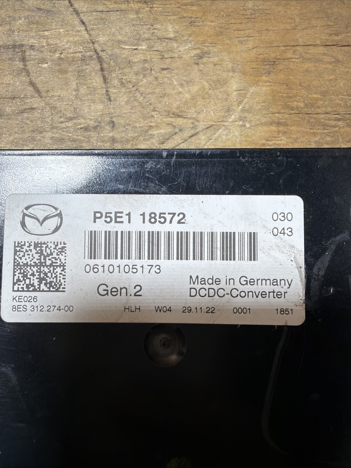 The product is a damaged OEM DC/DC Converter Module Controller for a 2020-2022 Mazda CX-5, specifically designed for Mazda trucks. The manufacturer part number is P5E118572, and the model is Mazda CX5. This converter module is essential for regulating power and providing a stable electrical supply to the vehicle's systems. It is a specific part for electric, hybrid, and PHEV vehicles, ensuring optimal performance and efficiency. DAMAGED