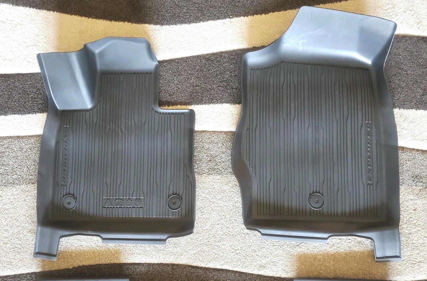 Slightly used 2020-2025 FORD EXPLORER all weather floor mats in excellent condition. Previously used but in great shape. No holes tears or gouges. From a smoke free car. Mats were scrubbed with soap and power washed clean. Slush mats sound like a seasonal accessory but they work hard all year to protect your FORD EXPLORER. These all-weather slush mats are scored with deep grooves that trap whatever is on your shoes below. Made from a tough, durable rubber, they are custom made to fit your 2020-2025 EXPLORER perfectly right down to the mountain grommets. 4 piece set. Black in color. Fast and free shipping!!! Thank you for shopping with us!!