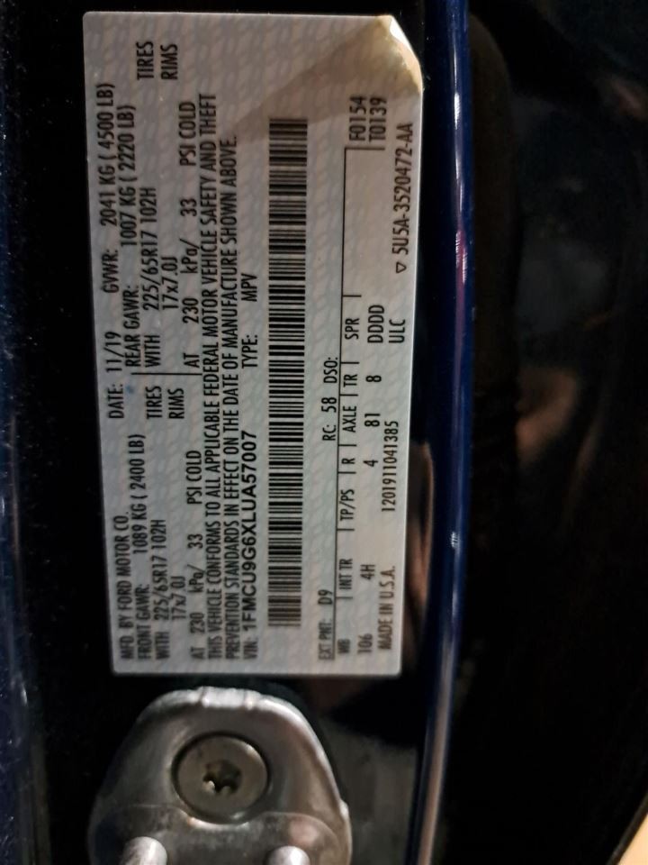 - VIN #: 1FMCU9G6XLUA57007