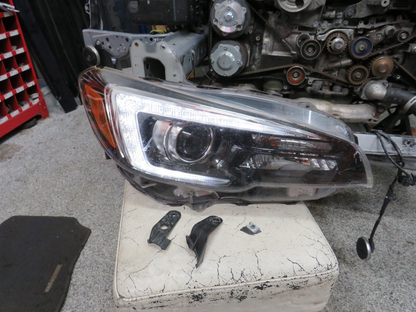 PASSENGER SIDE HEADLIGHT OUT OF 2020 SUBARU STI TABS ARE DAMAGED BUT INCLUDED AN THERE IS A CHIP IN THE LENS PICTURES SHOW ACTUAL HEADLIGHT SHIPPING TO LOWER 48 STATES