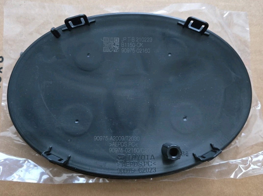 The 2021 2022 2023 Toyota Camry Front Grille Emblem Badge Logo Radar OEM 90975-A2009 is a black plastic grille emblem badge designed for the front of the vehicle. It comes with a 1-year manufacturer warranty and is a universal fitment part made in China. The emblem includes the OE/OEM part numbers 90975-02160, 90975-A2009, 90975 02160, 90975 A2009, 90975A2009, 9097502160, and 90975-C2023. This product is a genuine OEM part from GGPARTSMVR LLC. Used in good condition.