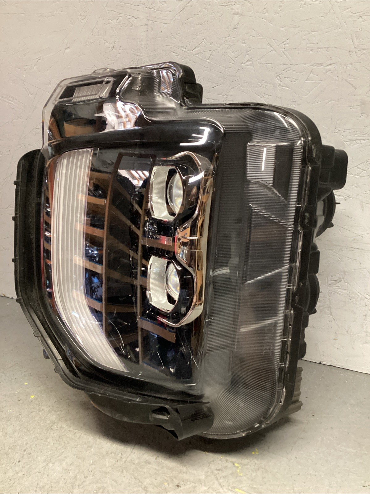 Damage is marked yellow Top upper brackets damaged Full LED headlight See all photos Lens has normal road wear Tested works perfectly Ask all questions before purchase