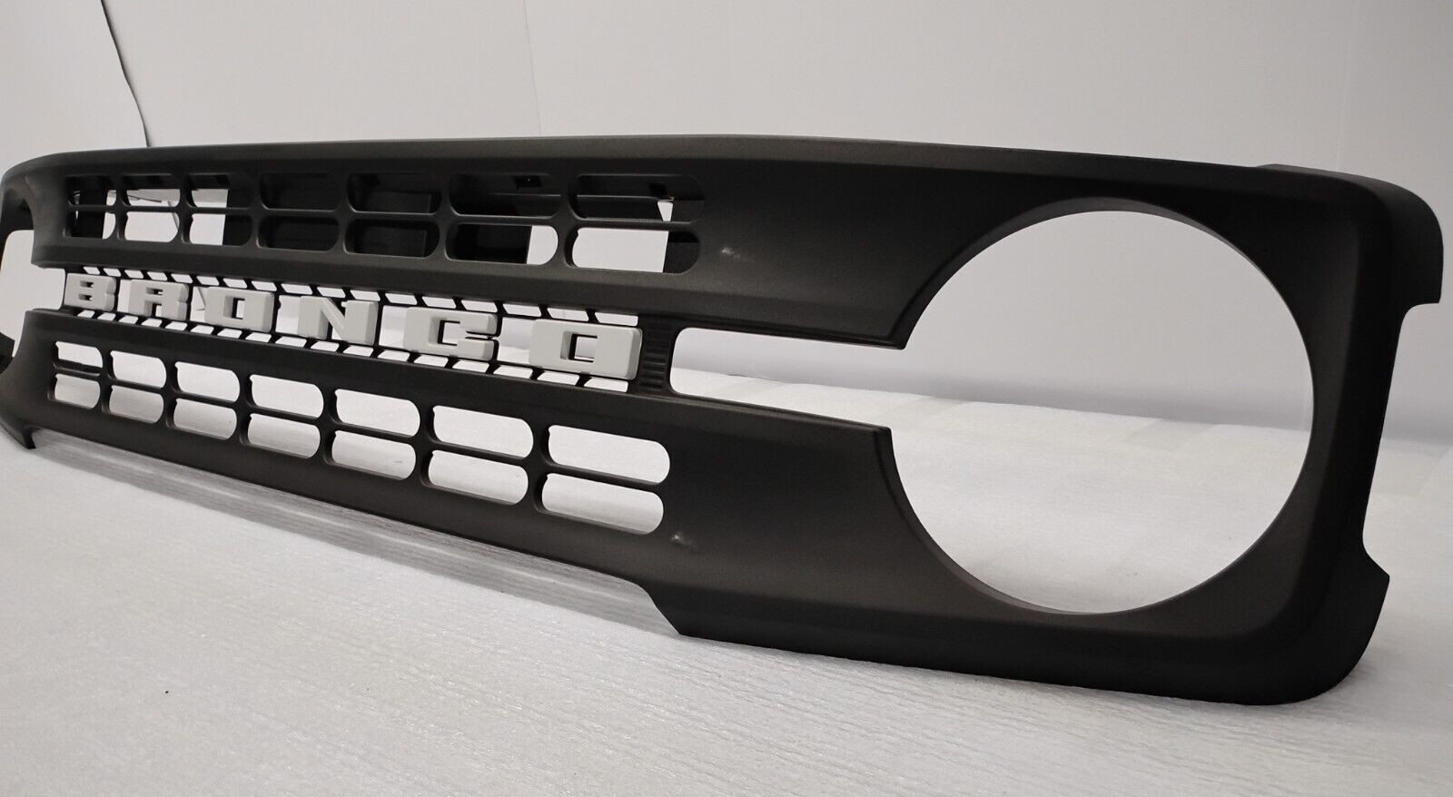 Bumper America LLC For Sale NEW TAKE OFF Black Textured Grille with white emblem, no camera option - Condition: Good condition with super light scratch , none deep scratches no gouges, no broken tabs (see photos) - Fitment: Ford Bronco sushquash - Ready to Install: Direct replacement, Genuine OEM part, not aftermarket - OEM Part Number: M2DB-8W200FF5YZ9 Compatibility: - Please cross-reference the OEM number to ensure this fits your specific model. - Verify compatibility before purchase. - Compatibility table should be used only as a reference and does not guarantee fit. Benefits of Purchasing from Us: - Deep Discount Savings: Compared to dealer costs. - Fast Shipping: We ship the next business day once the payment has cleared. - Local Pickup Available. Note: - All efforts are made to provide the best photos possible, but part colors may slightly differ from photo representation. - Ensure the part you are ordering is the exact part needed for your vehicle (year, make, and model). - Returns due to customer error will incur a 15% restocking fee, deducted from the refund. - Free shipping on sale items applies only within the 48 contiguous states. - Large items, such as bumpers and grilles, can only be shipped within the 48 lower states. - Shipping to international destinations, Alaska, Hawaii, or territories will require additional shipping costs, even if the item is on sale. We Appreciate Your Business!