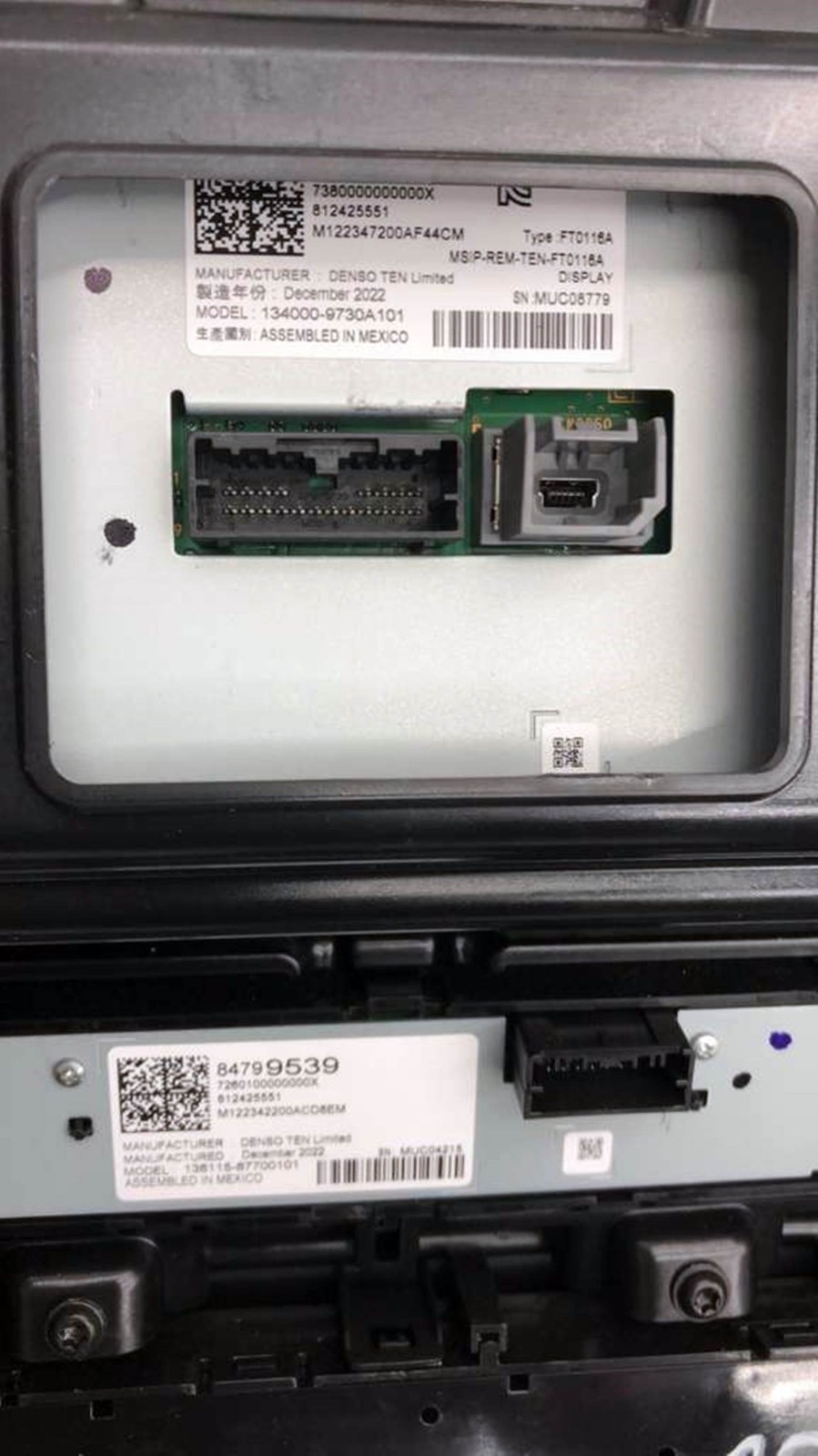 - Conditions & Options: Control panel assembly (display and controls), 7.0" display