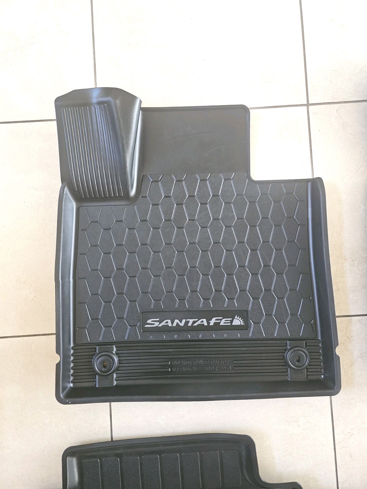 Slightly Used 2021-2023 HYUNDAI SANTA FE ALL WEATHER RUBBER FLOOR MAT SETÂ S2F13-AU210 OEM. Previously used but in great shape. No holes or gouges. From a smoke free car. Mats were scrubbed with soap and power washed clean.