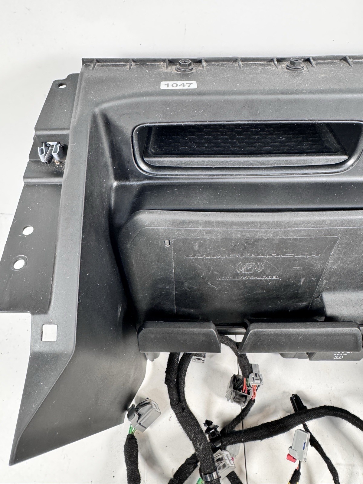 Used front phone hub / wireless charger removed from a 2021 Ram 1500 limited. Full console harness is included. This is not a plug and play install if you currently don’t have a wireless charger. There will be no returns or refunds if you are not replacing the same exact part. This is not a plug it in and it will work swap.