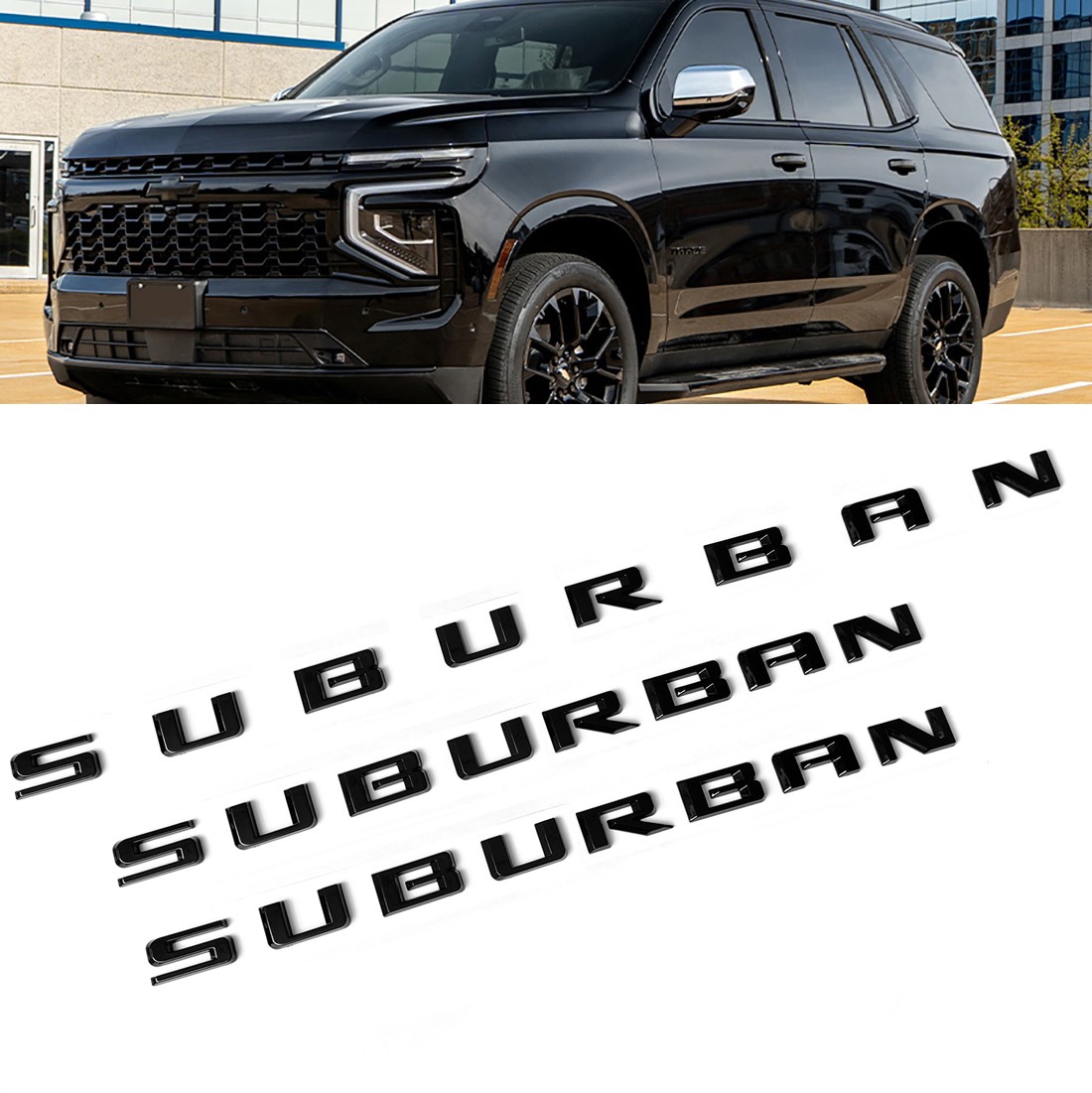 2021+ OEM Kit Grille & Rear Bowtie High Country Emblem for Suburban Gloss Black