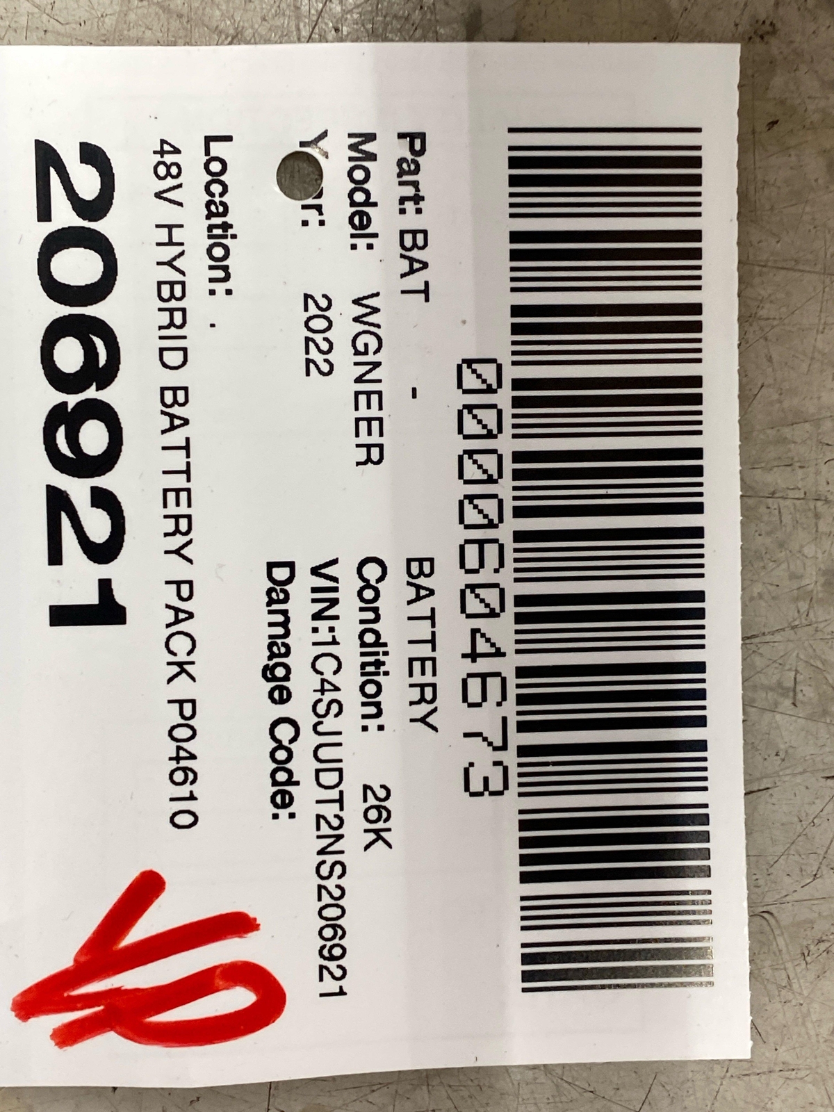 2022 2023 JEEP WAGONEER 48V HYBRID BATTERY PACK P04610491AJ 68598080AA OEM