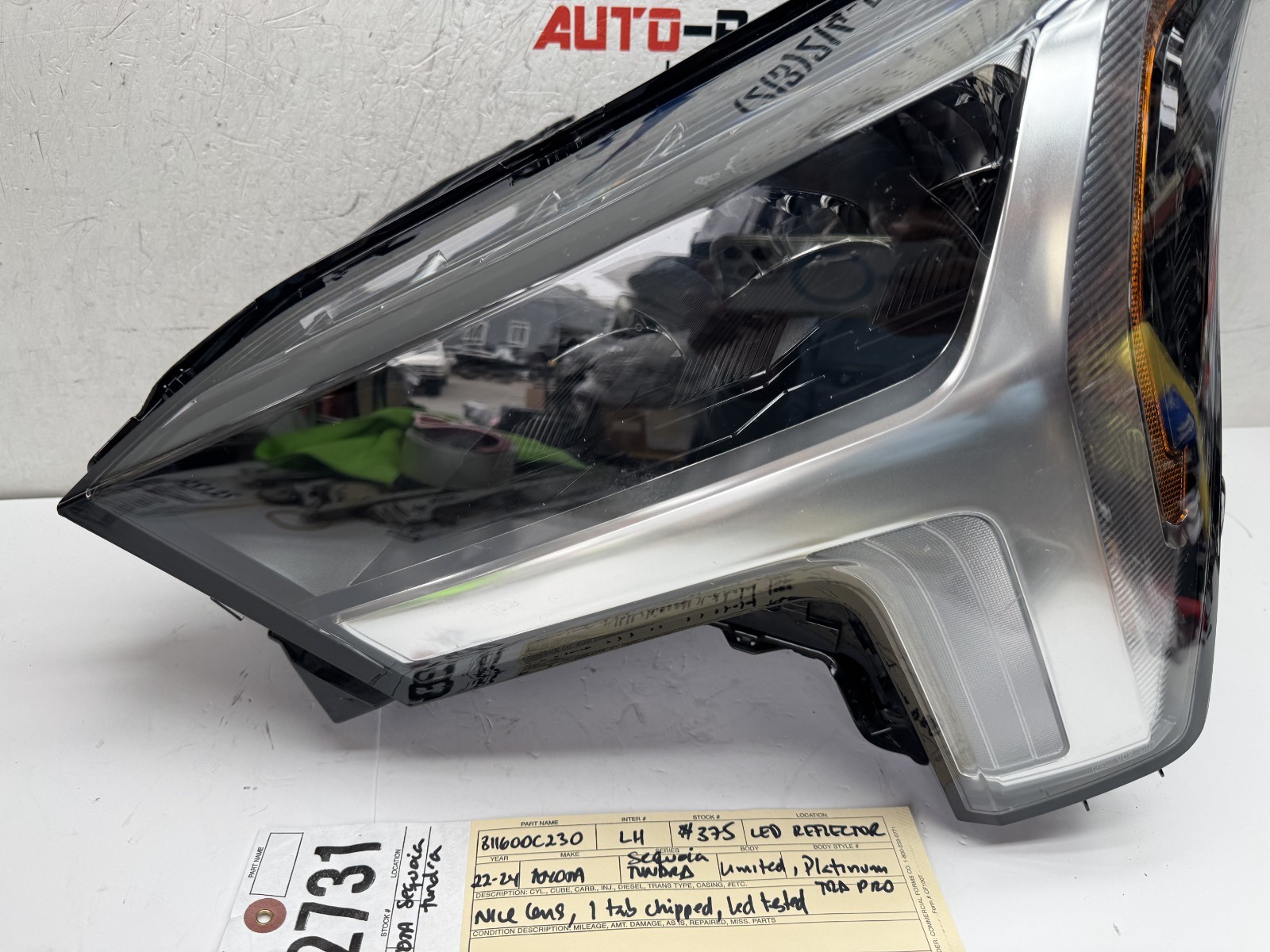 **This is an ORIGINAL FACTORY PART, not an aftermarket one.** **2022-2024 TOYOTA TUNDRA SEQUOIA LIMITED PLATINUM LEFT LED HEADLIGHT OEM** **(led components tested and working good)** **DESCRIPTION:** - It will come exactly as you see on pictures. - Headlight is in **fair****used** conditions. - **1 mounting tab chipped but all other tabs firmly intact, see photos #6 & #7.** - **Lens clean and clear.** - **Led tested and working good.** - Lens has some normal road wear and light scuff for been stored. - Bulbs might be included on some headlights **(see pictures please)**. - Model and year is based on the of our knowledge and is 98%. Please **compare part number and pictures very carefully.** **SHIPPING INFO:** - Shipments are sent via USPS, FedEx or UPS ground. - We will only ship to confirmed addresses if paid through PayPal. - We will try to ship as soon as possible. **FEEDBACK:** - If for any reason at all you are not satisfied 100% PLEASE contact us before leaving feedback so we can rectify the situation. We are human and make mistakes too. We shoot for 100% satisfaction so please let us know how we can help you. **RETURNS:** - We will accept all returns if part does not match with description or for any reason. **Please check part number and pictures before You buy this part, We list them how they are and try to sell for the best value and best price for our costumers. For more information feel free to email me, thanks for watching and good luck.**