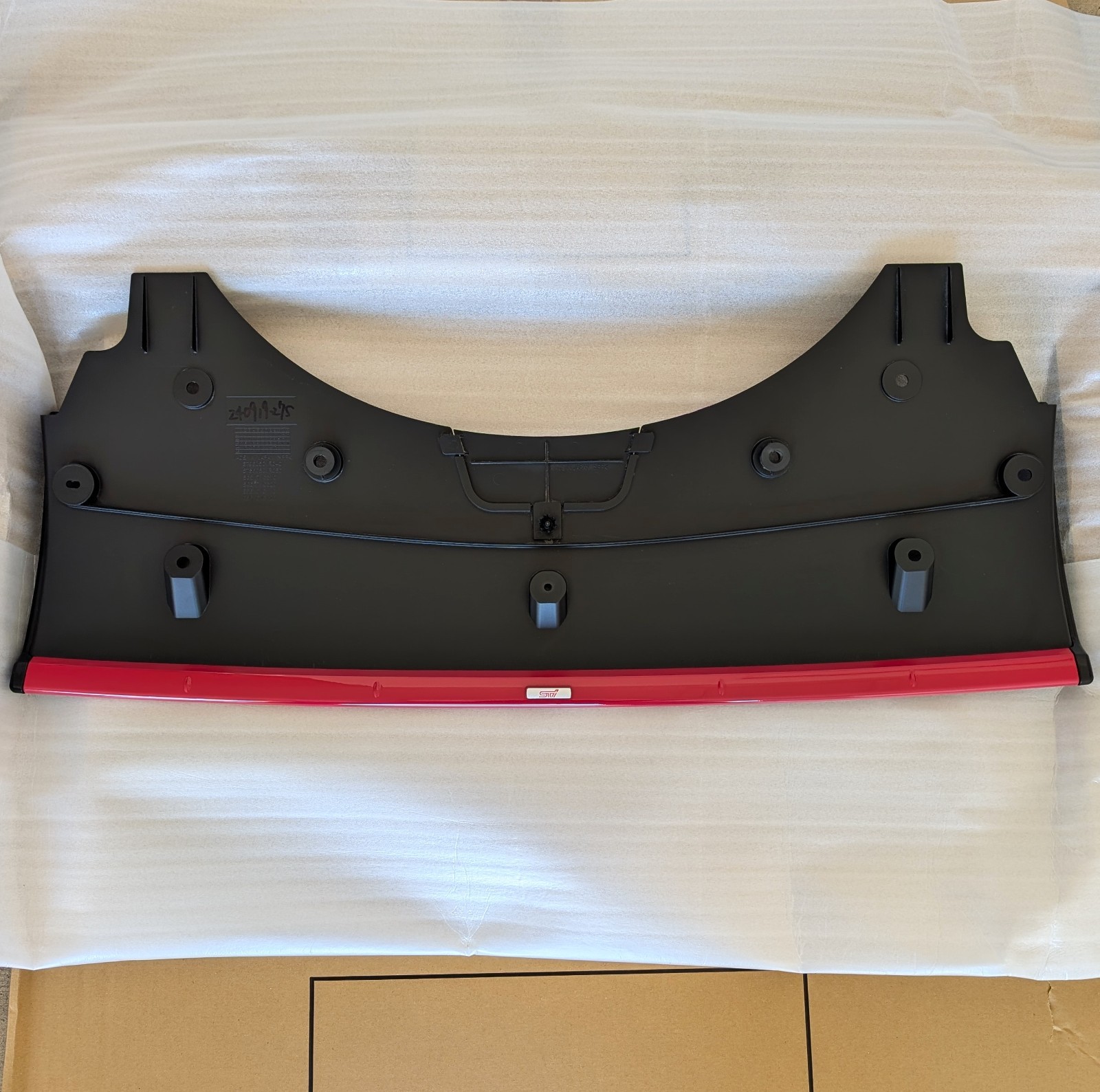 I have for sale a 2022+ Subaru WRX STI Rear Under Spoiler. This is the Cherry Red version. The spoiler is in excellent condition and includes all mounting hardware. The OEM Part Number is: E5610VC120. This was installed for roughly 1K miles before removal and only has very light signs of use. I only removed it to replace it with the black version. Please carefully review all listing images prior to purchasing. In hand and ready to ship! I added additional packaging materials to ensure it arrives to the buyer safely. The installation instructions are available online only via Subaru. **Return Note:** I do **_not_** offer partial refunds, zero exceptions. **All Sales Are Final, No Returns.** This is due to an influx of buyers manipulating the partial refund option. Adult owned, kept in a smoke and pet free home. If you have any questions, then feel free to ask. **Bid/Buy with confidence, I have 100% Positive feedback.**