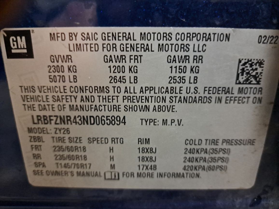 - VIN #: LRBFZNR43ND065894