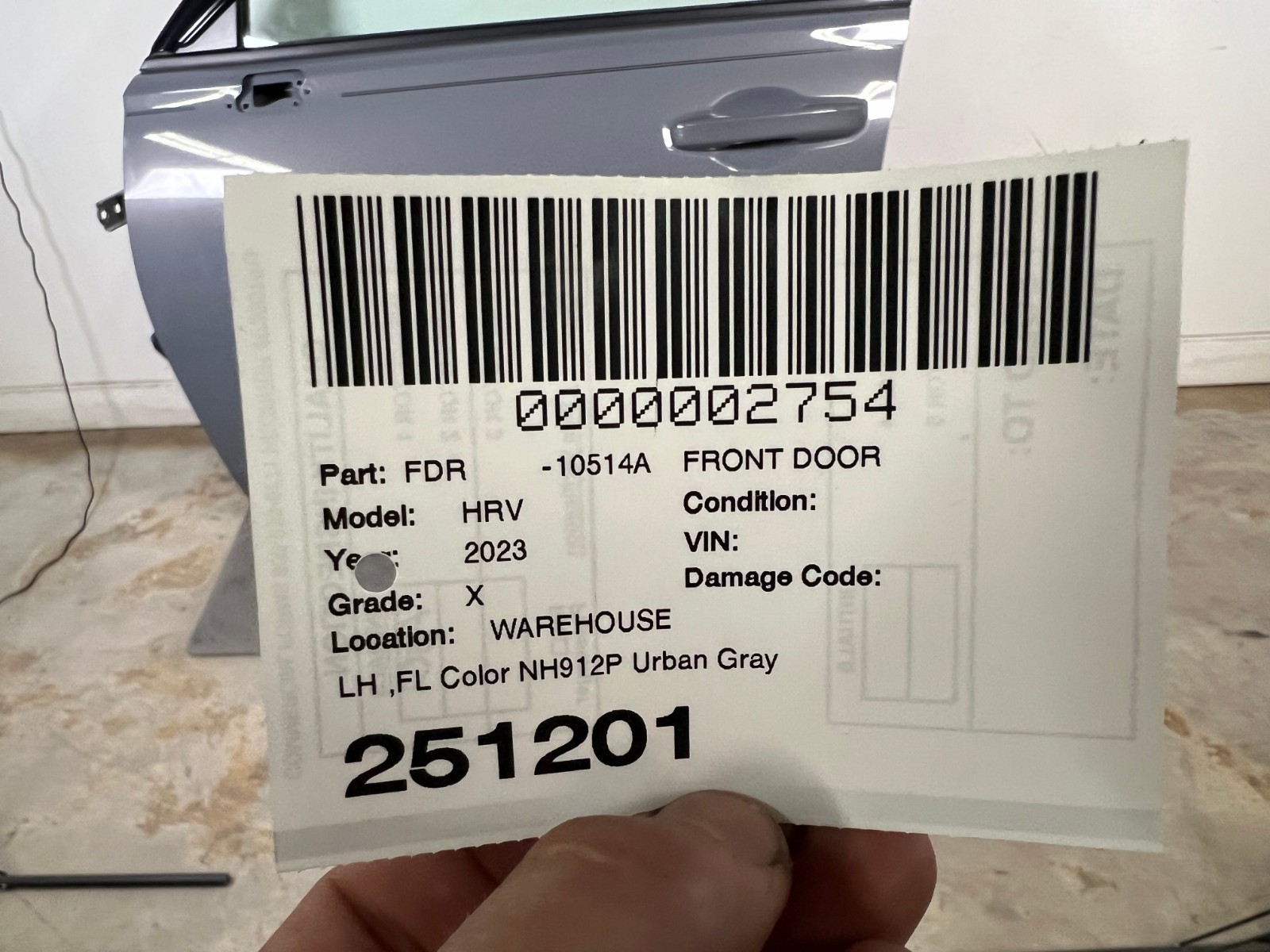 2023-2025 HONDA HR-V FRONT LEFT DRIVER SIDE DOOR W/ HANDLE / WINDOW COLOR-NH912P