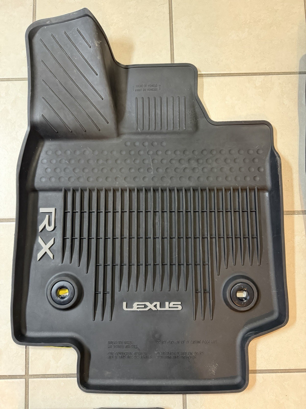 The 2023-2025 Lexus RX350 OEM all weather factory floor mats are a genuine 3pc set designed specifically for this vehicle model.