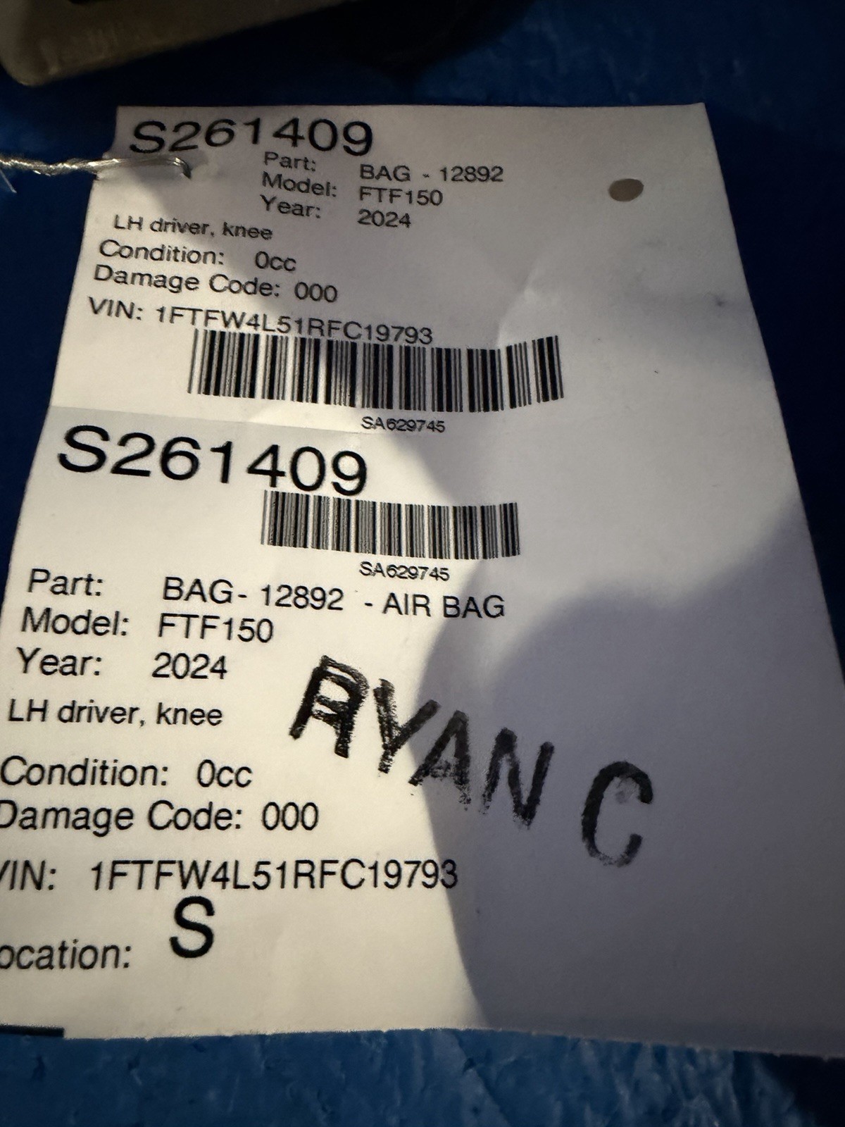 2024-2025- FORD F150 Driver wheel airbag Driver knee airbag “I certify this airbag is not subject to recall and will be shipped in accordance with hazmat shipping requirements