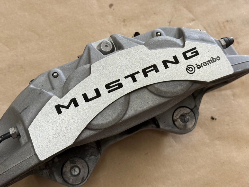**2024-2026 Ford Mustang GT 4 Piston Brembo Front RH Passenger Side Brake Caliper - OEM** **Take off 2025 Ford Mustang GT** **7k miles** OEM Brembo brake caliper. Calipers is in okay condition. Plenty of pad life left. You can see the metal brake line on the caliper has been pinched and will need replaced. The metal end on caliper side of the rubber brake line was bent down and broken off. You can see the damage to the hole. Zoom in on the pictures, i dont think it damaged the threads. Caliper sold for parts or possible fix. Check with dealer for fitment for other years. Pictures show exact condition. Comes exactly as pictured.