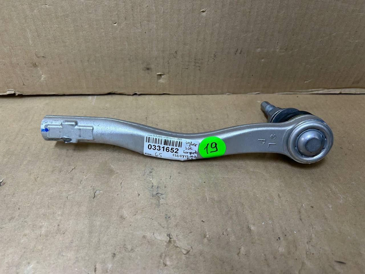 The product is a genuine OEM Tesla Cybertruck front left outer tie rod end with part numbers 1250845-00-B, 1250865-00, 1250845, and 1112245. The tie rod end is in silver color and specifically designed for the front left side of the vehicle. This high-quality part is an essential component for the smooth and precise steering of the Tesla Cybertruck, ensuring optimal performance and reliability on the road.