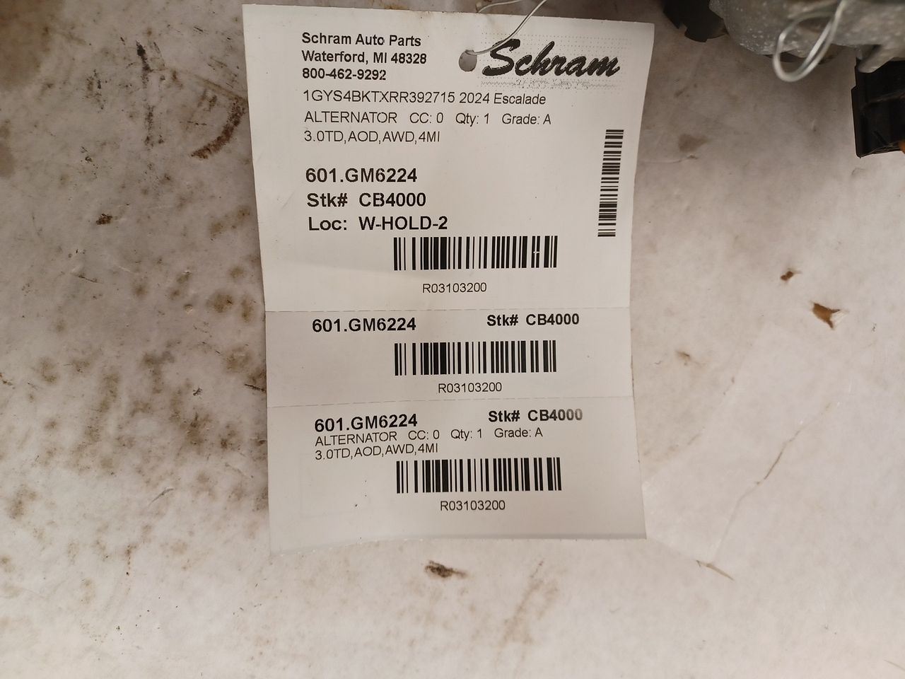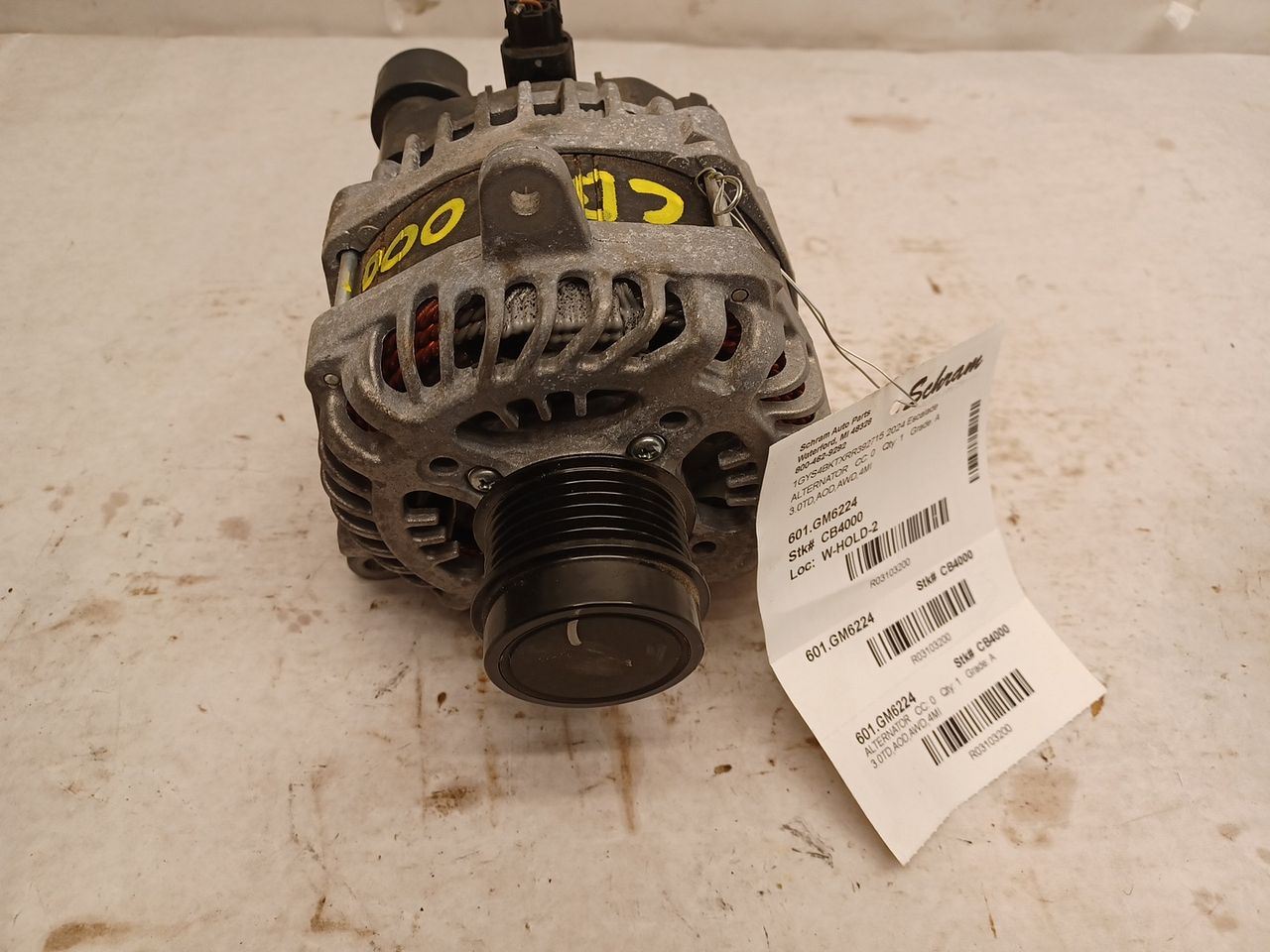 1923   Description 3.0TD,AOD,AWD,4MI Mileage: 0 This item will fit the following vehicles/applications: **Original Equipment Alternator** **Schram Auto Parts – Trusted OEM Quality Since 1923** This listing features a genuine **OEM Alternator**, responsibly sourced and tested to ensure dependable performance. Whether you're replacing a failed unit or restoring electrical function, this alternator delivers the quality and compatibility you expect from factory-original equipment. **Fitment Reminder:** Please use the part number, images, and the provided 'Fitment Guide' to confirm this alternator fits your vehicle. Compatibility may vary by engine size or trim. The buyer is responsible for confirming fitment prior to purchase. **Condition Notes:** This alternator is a used OEM part that has passed thorough testing. Cosmetic wear from normal use may be present, but all mounting points and electrical connections are intact and ready for installation. **Expert Help Available:** Have questions about compatibility or installation? We’re happy to assist with confirming vehicle-specific fitment. Upgrade your vehicle's charging system with confidence. Trust Schram Auto Parts to deliver tested OEM alternators and excellent customer service—backed by over a century of automotive expertise. Vehicle 2024 Escalade Mileage 0 Part Grade A What's this?