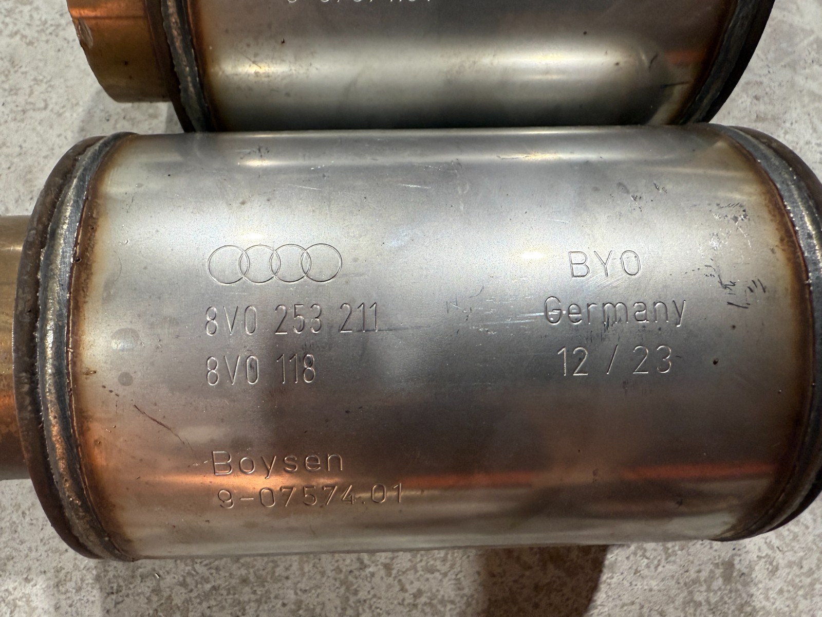 2024 OEM AUDI RS3 rear exhaust resonators, cut off.