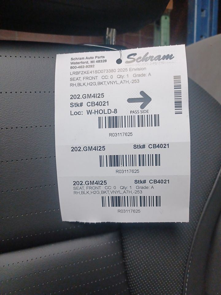 1923   Description RH,BLK,H2G,BKT,VNYL,A7H,-253 Mileage: 0 This item will fit the following vehicles/applications: **Upgrade Your Vehicle's Interior with a Quality Used Seat!** **Schram Auto and Truck Parts - Seat** Revitalize the interior of your vehicle with a reliable and affordable **Seat**. This listing offers you the opportunity to upgrade your driving experience by replacing worn-out or damaged seats with quality used options that provide both comfort and style. **Signs of Wear from Normal Use** These seats may show signs of wear from normal use, but they still offer a great solution for enhancing your vehicle's interior. It's important to note that any non-direct interchange applications might require additional items or procedures, and it's the buyer's responsibility to ensure proper fitment. **Fitment Verification** Ensuring a proper fit is crucial when replacing seats. Please make use of the description, conditions and options, pictures, part numbers, and VIN provided to confirm that these seats are the correct part for your vehicle. Fitment is the responsibility of the buyer. **Important Airbag Information** **Attention:** Listings containing '-253' in the Conditions and Options **do not include airbags**. This crucial detail ensures your safety and should be considered carefully before making your selection. **Quality at a Fraction of the Price** All seats are sold 'as is' and may be missing small plastic or trim pieces. Despite this, our seats offer exceptional value compared to new dealer prices. You can enhance your vehicle's interior while staying within your budget. Our knowledgeable team is here to help you make an informed decision. Upgrade your driving experience with a quality used seat from Schram Auto and Truck Parts. Enjoy the comfort and style of a new seat without breaking the bank. Vehicle 2025 Envision Mileage 0 Part Grade A What's this?