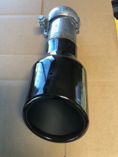 **Removed from a NEW 2025 Ram 1500 Hurricane I6 Turbo, these factory Mopar BLACK CHROME tips will work with many applications with a 3" pipe. The overall length is 11.5" with a 5" vertical OD. The clamp is included. You set the quantity you want. Price and shipping cost automatically discounted for the second piece.** **Sold by the "each" and shipped in 50 states\*\*\*THESE DO NOT WORK ON EARLIER RAMS WITH THE ORIGINAL LONGER TIPS.**