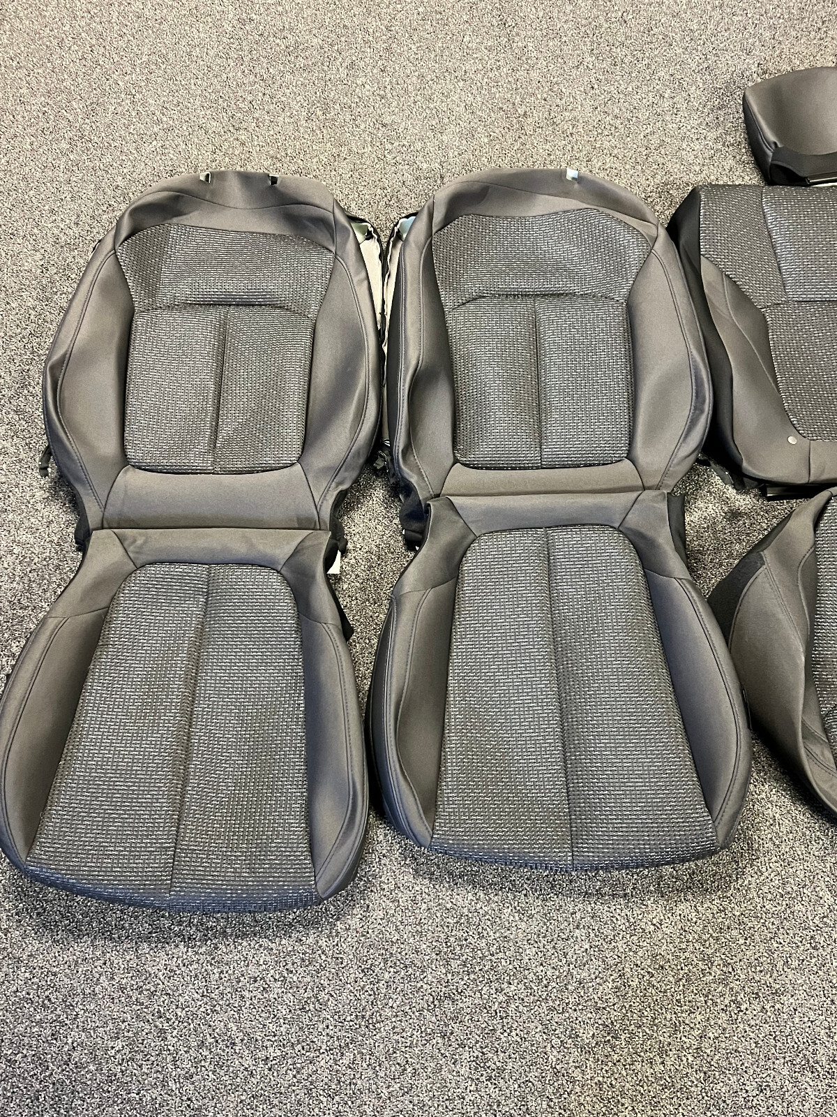 PLEASE NOTE: Please read this whole description before ordering. This is an OEM factory cloth kit that is meant to fully replace the existing material. It is not a slip-on cover, and the old material will have to be removed to install it properly. This does not come with the tools or supplies necessary to install this product. Make sure to match up your existing covers to the given pictures and description, and if you have any questions, let me know. This is a factory cloth kit for a 2025 Subaru Forester. It is for a premium sub model. The airbag slots are fully intact, and also features some vinyl accents. Also, the kit is black with blue contrast stitch. This kit DOES NOT INCLUDE the front headrests. It is in near perfect condition. If you have questions please reach out!