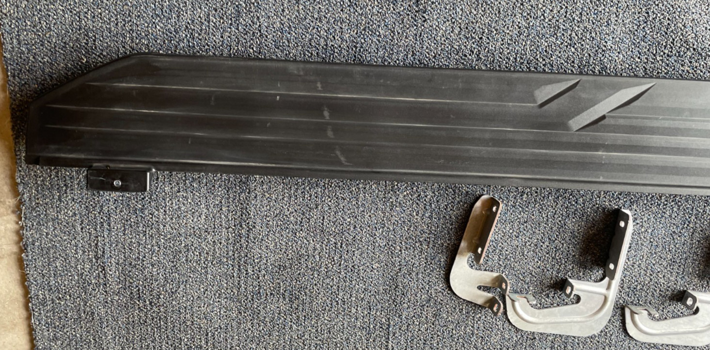 **2021 - 2026** **TAHOE, YUKON, AND OTHER GM VEHICLES** **This will not fit the long wheel base SUVs such as Suburban or a Yukon XL, or an Escalade ESV.** Up for sale is an OEM RIGHT PASSENGER side running board and end cap. This should fit a 2021 - 2022 Cadillac Escalade, GMC Yukon, & Chevrolet Tahoe, THESE HAVE THE BLACK STRIPE THAT RUN DOWN THE MIDDLE... **The end cap extension is included.** **_THE BRACKETS ARE INCLUDED ..._** What you see in the pictures is exactly what you get, unless mentioned otherwise in the description. Make sure to inspect the item thoroughly in the pictures above before buying. USED BECAUSE THESE GET A FEW MARKS, SCRATCHES, DINGS, AND SOME TAPE RESIDUE ( CAN BE CLEANED WITH GOO GONE AND ELBOW GREASE ) WHEN THEY ARE REMOVED AND STACKED...SEE PICTURES - SO YOU WILL KNOW EXACTLY WHAT YOU ARE GETTING...RIGHT SIDE ONLY...BRACKETS ARE INCLUDED... ``` THANKS AND GOOD LUCK!!! ```