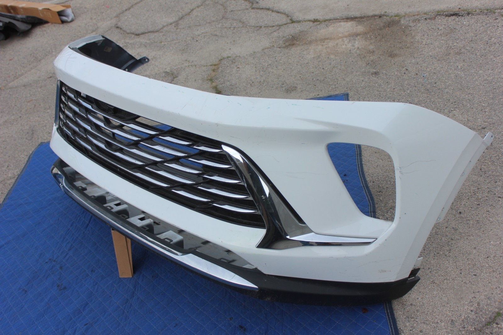 Listing is for: FRONT BUMPER COVER ASSEMBLY FOR 24-26 BUICK ENVISION Description: OEM **Included with the bumper:** Upper grill, lower chrome trim, lower valance, side grill trims, fog light inner support, upper grill support White color. Paint match not guaranteed! (To be reconditioned and painted!) **Condition:** **Far from perfect!** Scuffs/scratches, paint touch ups, cuts and damages Right side grill chrome trim is damaged. Pic. 16 Cut on grill support repaired. Pic. 22 **View all pictures!** **The item must be picked up from nearest shipping facility in the US!** **A good phone number must be provided!** **Additional shipping fees apply for PR, AK, HI!**