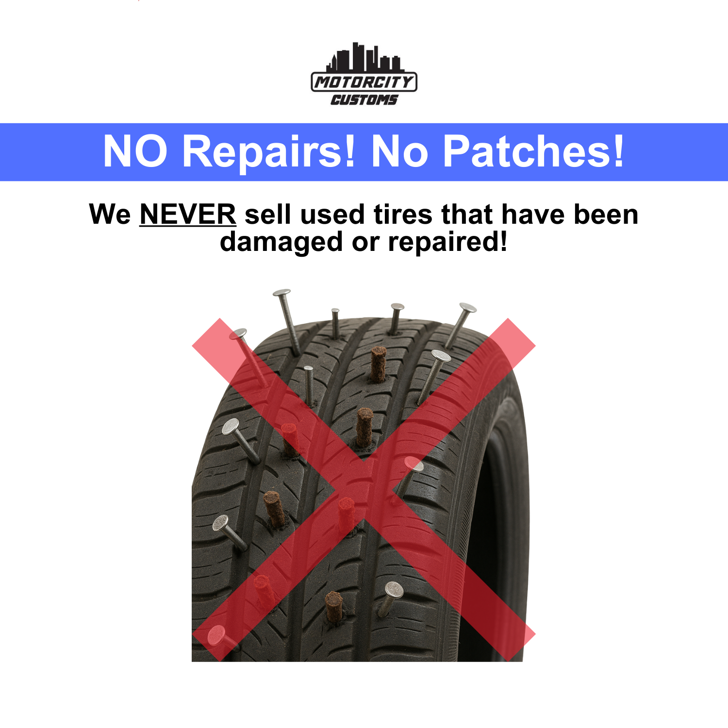 - Repairs: NO REPAIRS! NO PATCHES!
