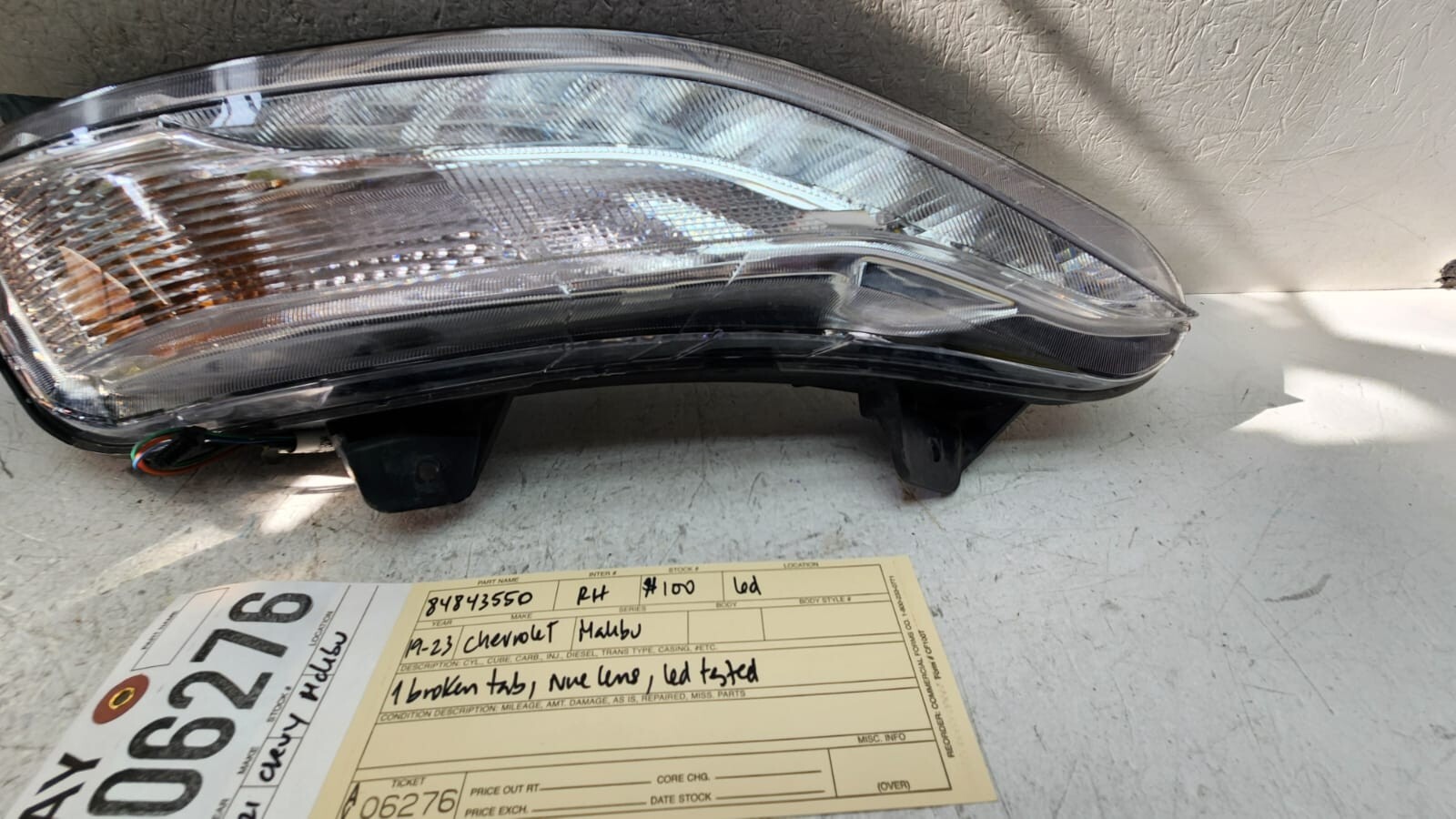 **This is an Original factory part** **2019-2023 CHEVROLET MALIBU RIGHT PASSENGER LED FOG LIGHT LAMP OEM** **(led tested and working good)** **DESCRIPTION:** - It will come exactly as you see on pictures. - Fog light is in **fair used** conditions. - **1 mounting tab broken off, see all photos please.** - **Lens clean and clear.** - Bulbs might be included on some fog lights **(see pictures please)**. - Model and year is based on the of our knowledge and is 98%. Please **compare part number and pictures very carefully.** **SHIPPING INFO:** - Shipments are sent via FedEx, USPS. - Shipments to Hawaii, Alaska and Puerto Rico will increase the freight amount and shipping time. - We offer extra shipping services like USPS priority and USPS express mail, contact me for more information. **FEEDBACK:** - If for any reason at all you are not satisfied 100% PLEASE contact us first before leaving a negative feedback or open a case so we can rectify the situation. We are all humans and mistakes can happens when describing and item. I always do my best to describe my items as accurate as possible. **RETURNS:** - We will accept all returns if part does not match with description or for any reason. Buy with confidence. **Please check part number and pictures before You buy this part, We list them how they are and try to sell for the best value and best price for our costumers. For more information feel free to email me, thanks for watching and good luck**