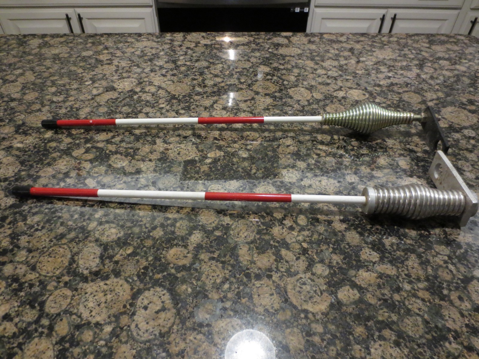 2ea Snow Plow Marker, Trailer Sight Rod, Reflective, Fiberglass, Stud Mount, Stainless Steel with Springs & Mount Bar. 21" & 23". Good condition. Please look at pictures to see the actual item that you will be receiving so there are no surprises. Smoke free home. Email me with any questions. Thanks.