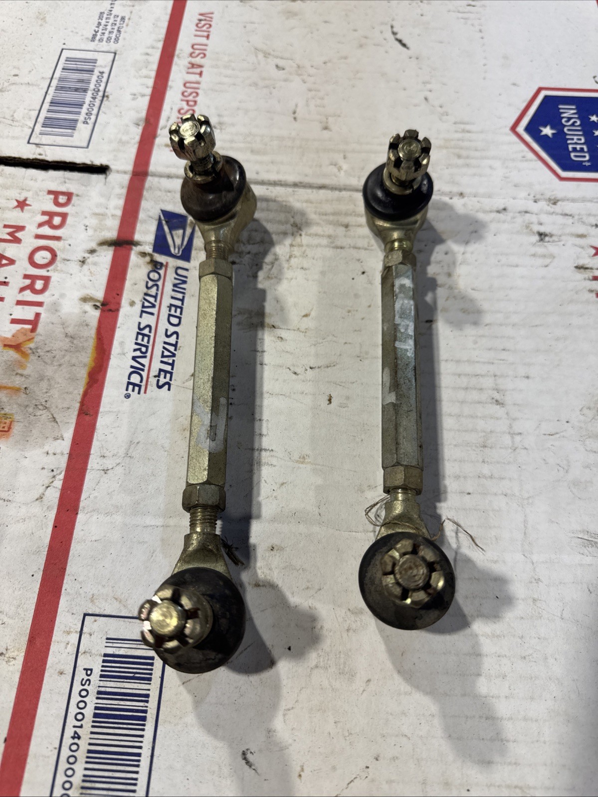 This left and right set of tire rods are from a 110 cc BMS. These will fit many small 90 110 and 125 four wheelers. Please check your measurements before purchasing. The product is a set of 2 10mm tie rods specifically designed for 110cc to 125cc ATVs, quad bikes, and go-karts such as those from Taotao and Coolster. These tie rods are essential components in the steering and suspension system of these vehicles, providing the necessary linkage for smooth and controlled steering. Made to fit the specified size and model of the vehicles, these tie rods offer durability and reliability for improved performance and safety. These parts are like new, all sales are as is no refunds Free shipping