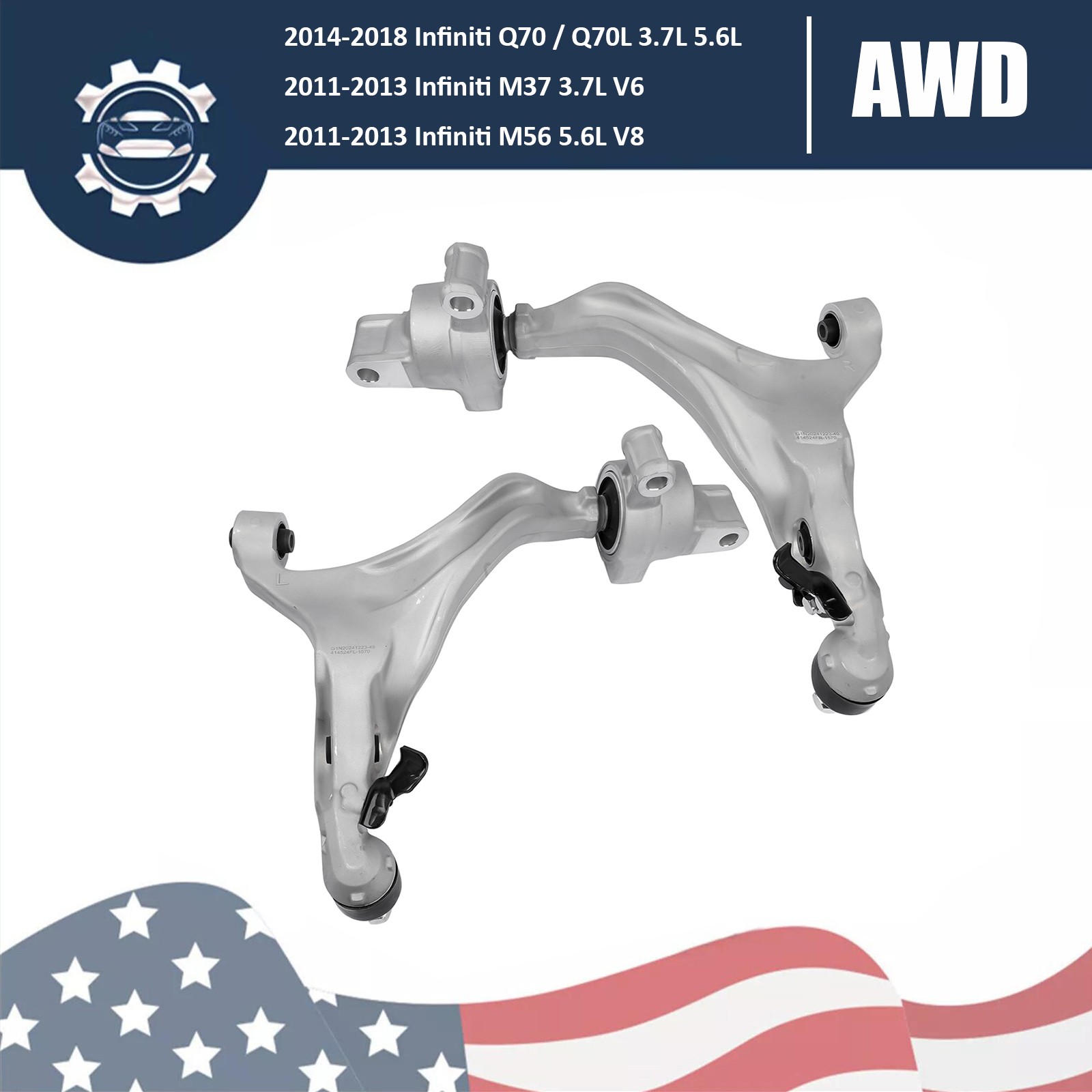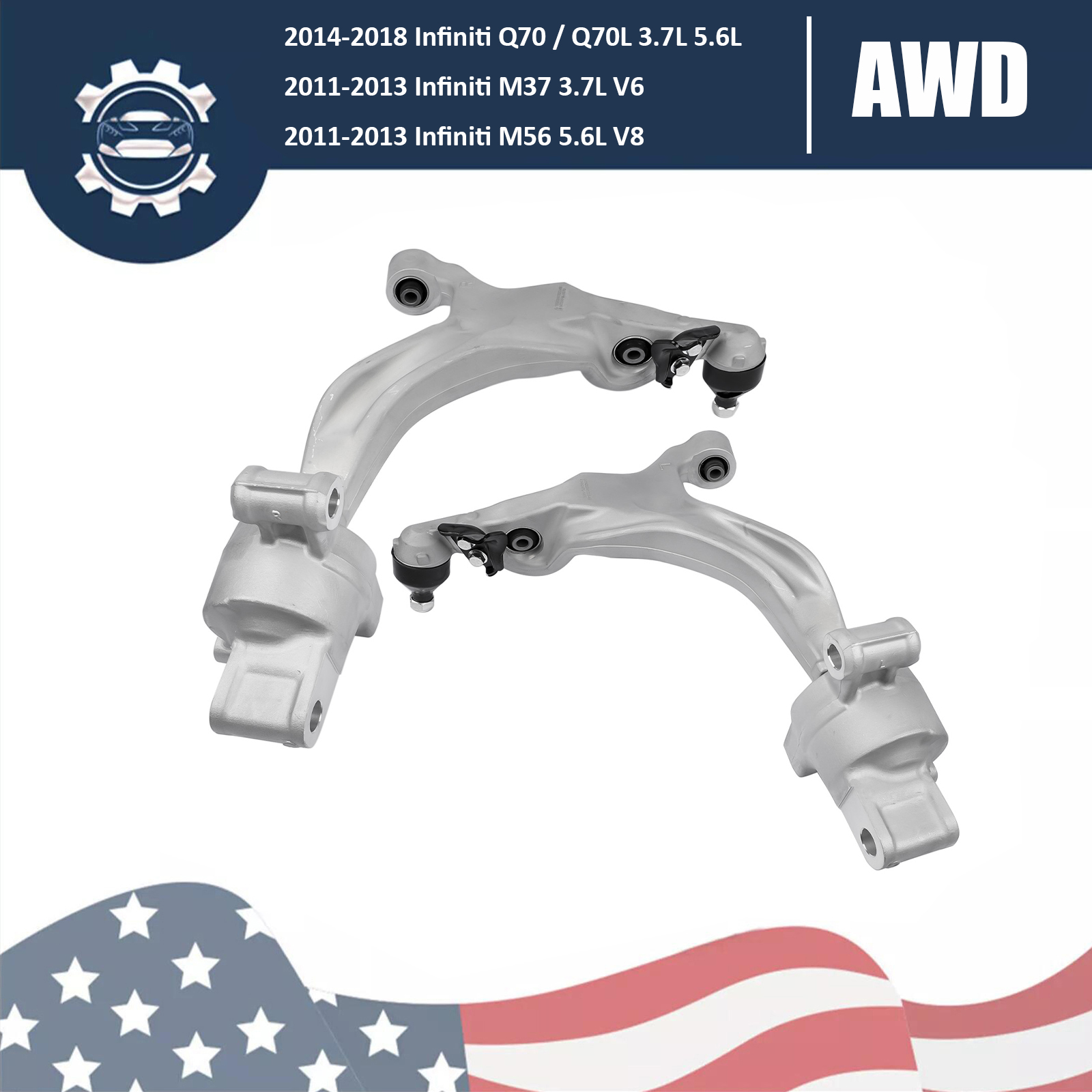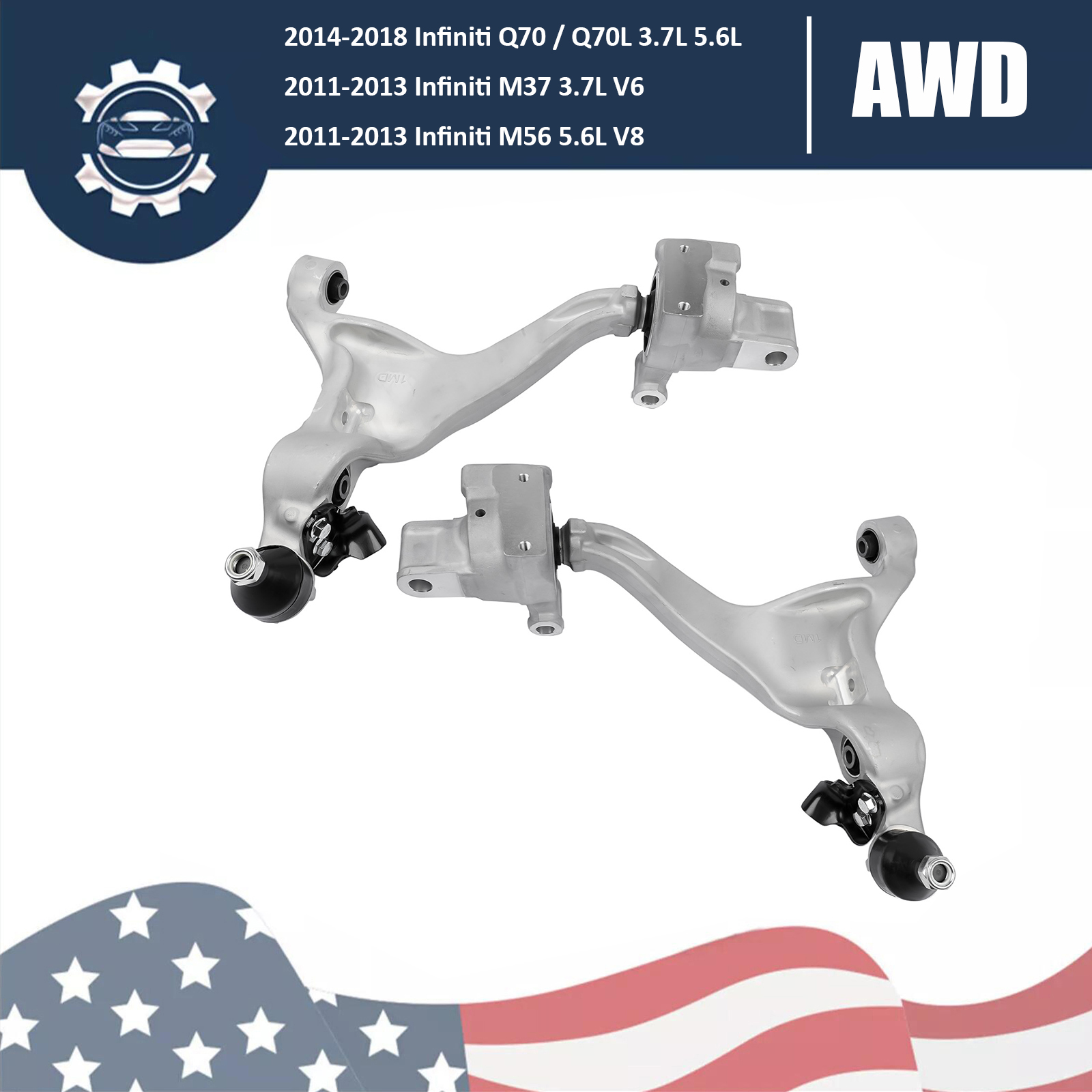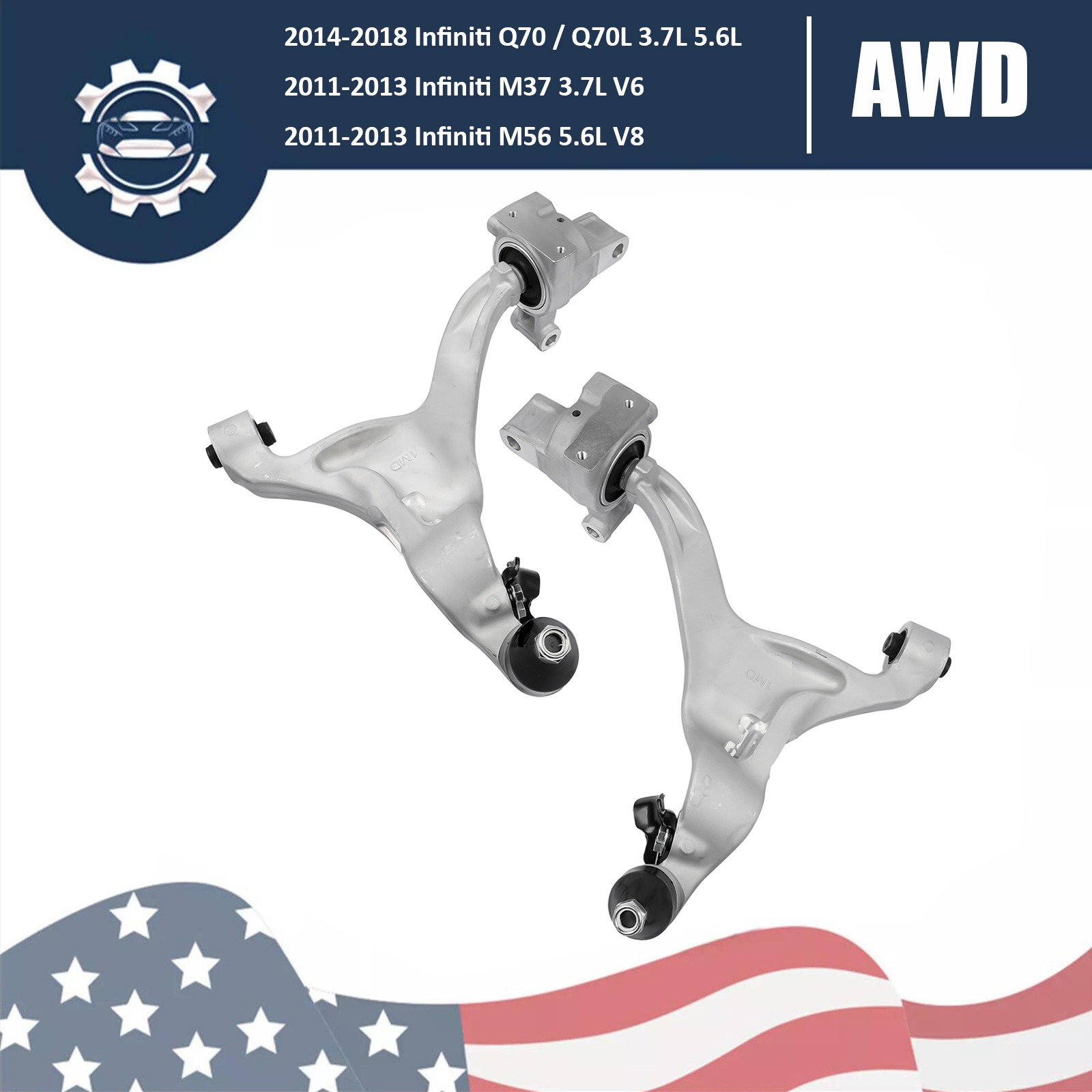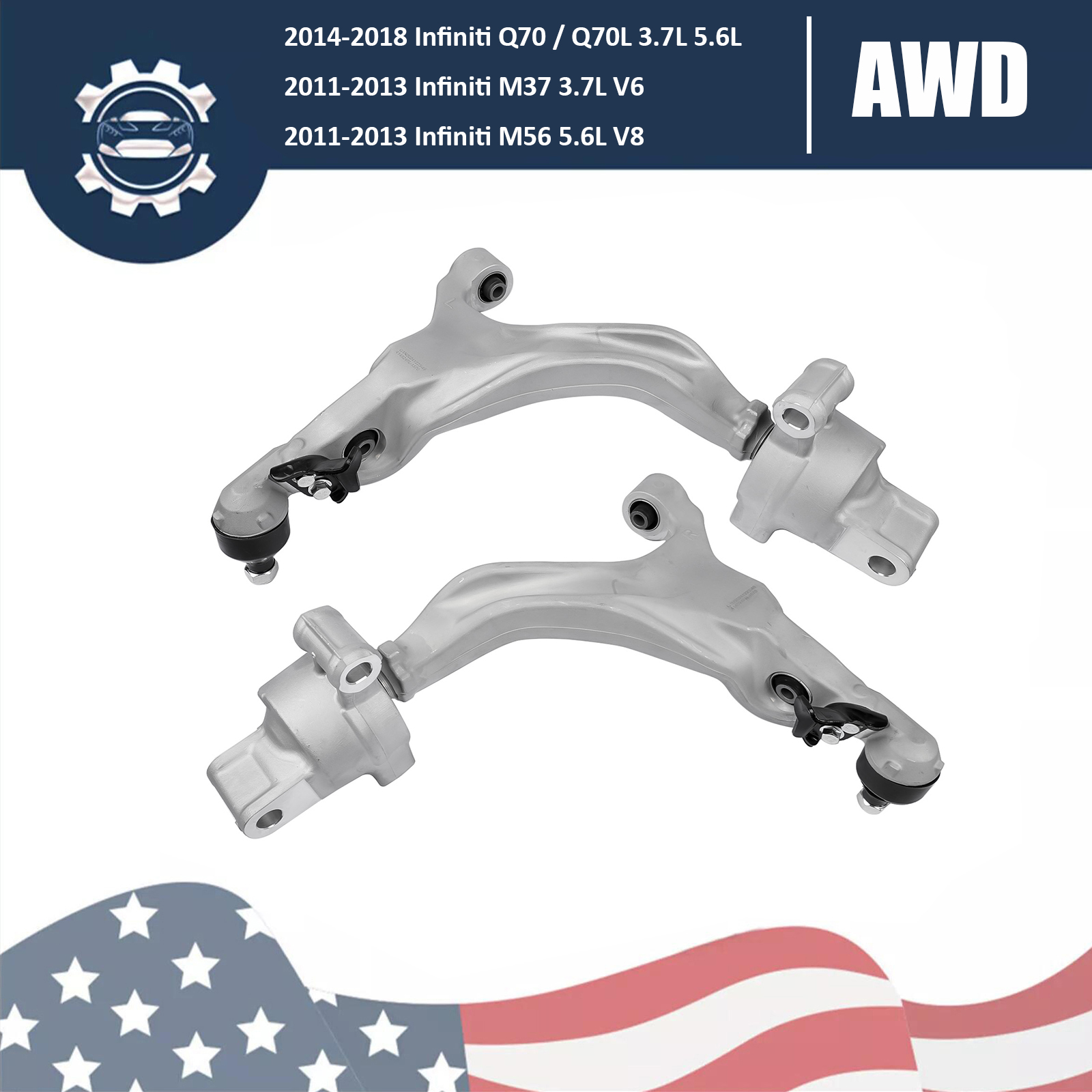2x Lower Control Arms Front Left+Right for Infiniti Q70 Q70L M37 M56 3.7L 5.6L
