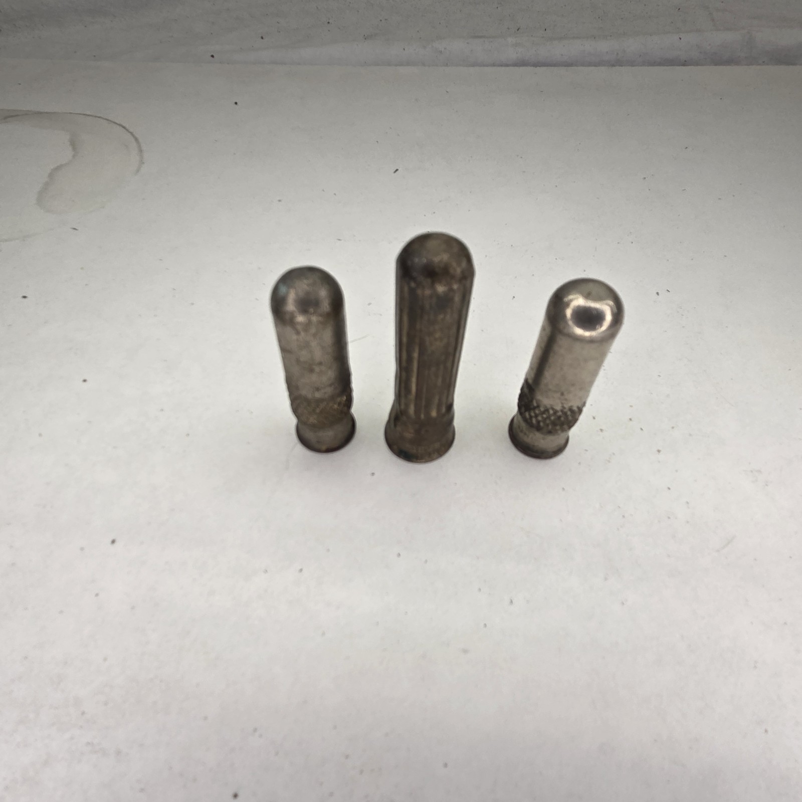 3 Antique Brass Schrader 1900's Nickel Tire Valve Stem Cap Dust Cover