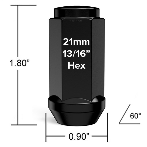 These Lug Nuts can fit vehicles with studs that are the following thread size/pitch: 9/16" \| 9/16"x18 \| 9/16x18 \| 9/16-18 \| 9/16"-18 \| UNF RH. Make sure your wheels have Cone Seat lug holes. Please click into this section to view important fitment information and additional details about the item. Compatible with Chevrolet 77-86 K30, 87-88 R20, 89-91 R2500, 90-91 R3500, 89-91 V2500, 89-91 V3500. Compatible with GMC R2500, R3500, V3500, V2500. Compatible with Dodge 94-10 Ram 2500, 96-03 Ram 2500 Van, 94-10 Ram 3500. Compatible with Ford 203-14 E-250, 85-02 E-250 Econoline, 03-05 E-350 Club Wagon, 76-08 E-350 Econoline, 90-00 E-350 Econoline Club Wagon. Vehicle Must Have 9/16"-18 9/16x18 9/16"x18 Studs. - Total Length: 1.80 inches \| Thread Size & Pitch: 9/16/2018 \| Seat Type: Cone Seat \| Color: Black \| HEX SIZE: 21mm (13/16") \| STYLE: Long, Bulge Closed Lug Nuts. See Diagram for Measurements. - SAFETY ADVISORY: Wheel hardware is an important safety component. Ensure these lug nuts are the proper thread size and length/width before installing. Additionally, ensure your wheels' lug seat matches these lug nuts. Failure to install correct hardware is unsafe and may cause wheel/tire assembly to loosen or fall off while vehicle is in motion. - INCLUDED: One Package contains a 32 Pack of Long, Bulge Closed Lug Nuts. These black Lug Nuts arrive in a small compact box that is portable for easy storage. You will need certain tools for lugnut installation, including floor jack and torque wrench. You'll also need a 21mm (13/16") Hex Socket Key Tool. - These 9/16/2018 lug nuts are not an oem or genuine OE part, but are compatible with various Chevrolet, GMC, Dodge, Ford vehicles. We are confident you'll find our lug nuts to be a comparable OEM replacement, at a significant cost savings. Our lug nuts are made with with strong cold forged steel. Heat treated to ensure dependable strength, durability and performance. Triple coating provides the ultimate in corrosion, rust and scratch resistance. > **Item Condition** > **Information** > > Lug nuts are in perfect working condition. The nuts have cosmetic blemishes (nicks / scuffs / scratches), but this does not affect its use. * * * > **Important Note About** > **Pictures** > > Please note that the pictures depicts a "new" product and will not be the actual > item you will receive. If you have any questions or concerns, please > message us. * * * QuantitySet of 32 Lug NutsThread Size9/16/2018TypeLong, Bulge ClosedSeat TypeCone SeatNut Height1.80 inchesHex Size21mm (13/16")MaterialSteel (Heat Treated)ColorBlack ## **FITMENT INFORMATION** These Lug Nuts can fit any vehicle with studs that are the following thread pitch: 9/16" \| 9/16"x18 \| 9/16x18 \| 9/16-18 \| 9/16"-18 \| UNF RH **Wheel Stud Length WARNING**: If your wheel studs are longer than 48mm (1.89 inches), these nuts will bottom out, potentially causing accident and/or injury. Important Notes Important Notes Legal Disclaimer #### Important Notes ``` FINAL SALE ITEM - Cannot be returned/exchanged. It is extremely important for you to double check fitment and the notes below before purchasing. Before Purchasing Verify Thread Size - If your vehicle is not shown as compatible above, it is the buyer's responsibility to ensure they are purchasing the correct thread size. Verify Seat Type - Wheel Lug Holes have a variety of seat types. It's impossible for us to know what you have. Therefore, it is the buyer's responsibility to verify the seat of this nut matches their wheels Verify Lug Nut Measurements - We cannot know what wheel you own. It is necessary for you to check the diagram of the nut (width/length/etc) to ensure it will work with your wheels. Installation Professional Installation Recommended Be sure to torque the lug nuts to the vehicle manufacturer specifications Avoid using an impact wrench; improper usage may cause damage to components Check and re-torque after 25-50 miles of driving ``` Legal Information #### Legal Information ``` NOTE: This is an aftermarket component. The vehicle makes/models used in this listing are registered trademarks of their respective owners, and are used in this listing to identify compatibility. ``` More Items!