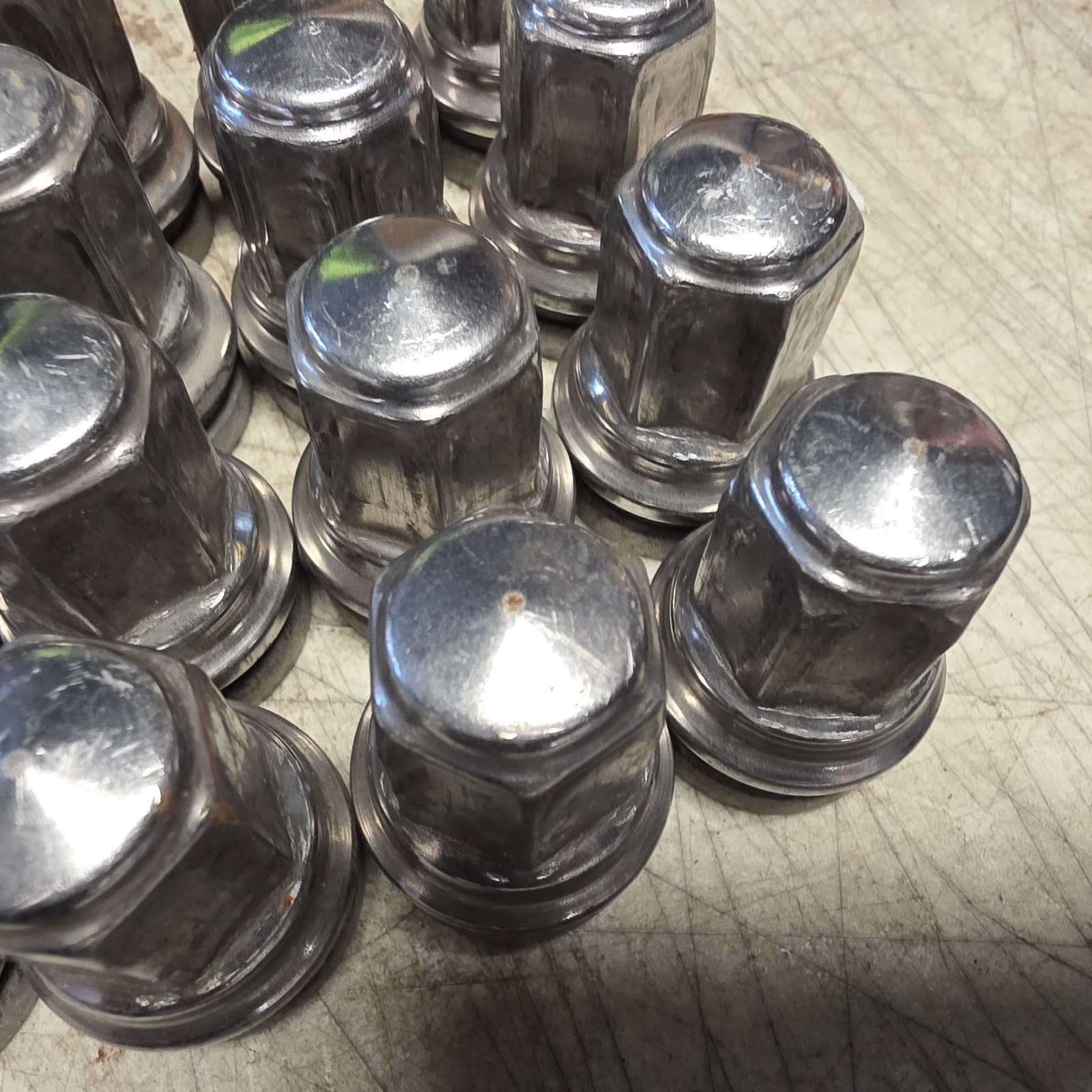 WE HAVE FOR SALE A SET OF 32 STAINLESS STEEL FACTORY OEM LUG NUTS THIS IS A USED SET PLEASE LOOK AT THE PICTURES AS THIS IS THE EXACT SET YOU WILL RECEIVE SET #1 FOMOCO PART# HCPZ-1012-B FREE SHIPPING TO THE CONNECTED 48 STATES ONLY !!!!