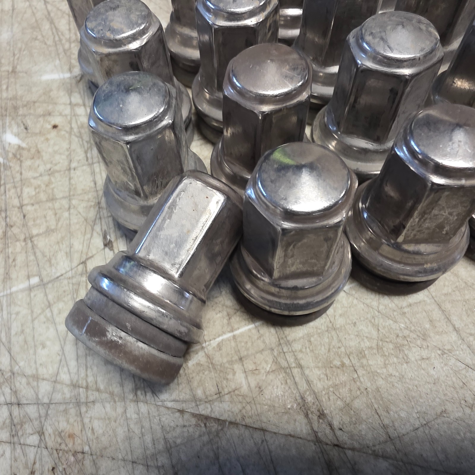 WE HAVE FOR SALE A SET OF 32 STAINLESS STEEL FACTORY OEM LUG NUTS THIS IS A USED SET PLEASE LOOK AT THE PICTURES AS THIS IS THE EXACT SET YOU WILL RECEIVE SET #2 FOMOCO PART# HCPZ-1012-B FREE SHIPPING TO THE CONNECTED 48 STATES ONLY !!!!