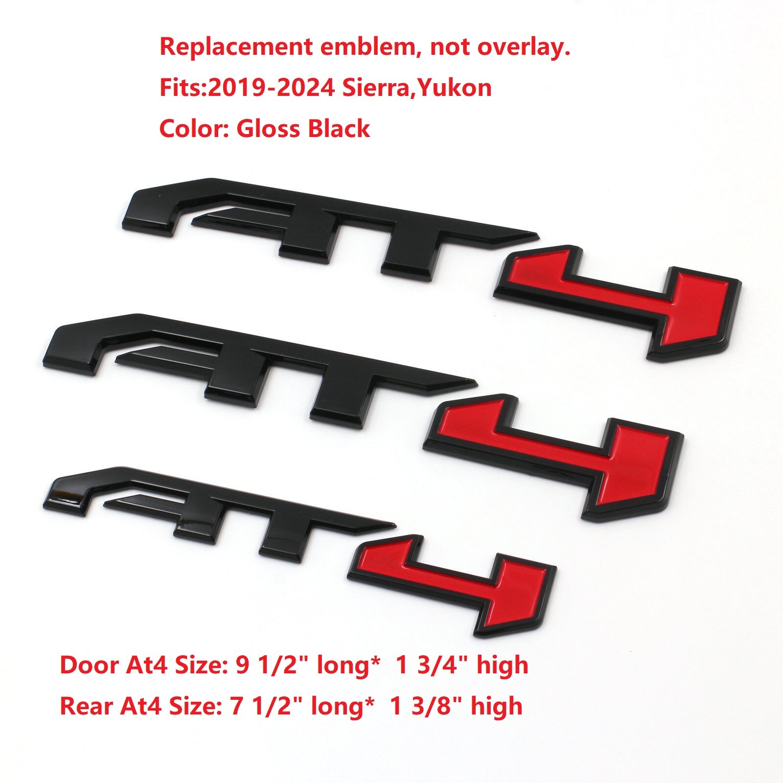 3Pack OEM AT4 Badge Emblem fits 2019-2026 Yukon Sierra 85002068 Black RED