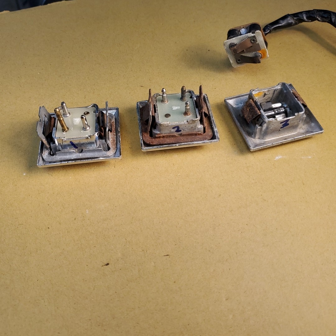 This listing is for all three switches, I think you can make one good one from the lot, or maybe fix yours. #1 has nice chrome but pins are loose on PCB #2 and #3 seem to have good PCBs Also includes wiring harness connector in good shape R09-1G