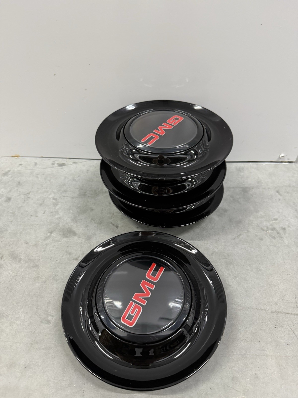 4 Black Floating Center Caps For GMC XL Hubcap Rim Emblem 7.2 In 182 mm