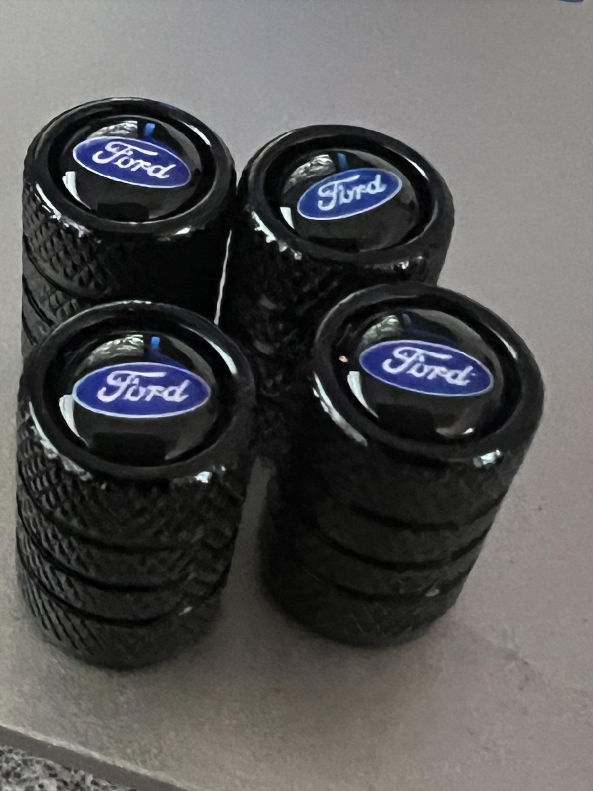 4 Black Ford Tire Valve Stem Caps For Truck Car Universal Fitting Free Shipping
