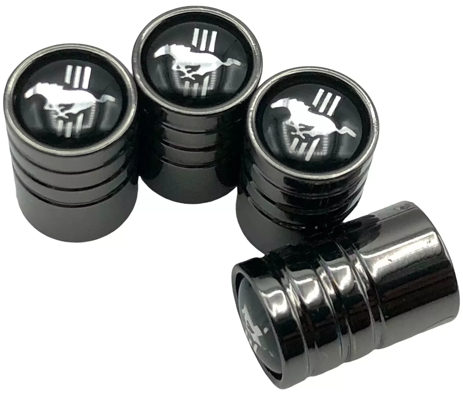 4 FORD MUSTANG Tire Valve Cap Air Valve Stem Cover (Metallic Black)