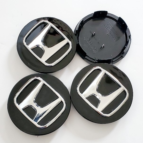4 Gloss Black Wheel Center Caps Chrome Logo for Honda Rim Hubcaps 69mm / 2.75"