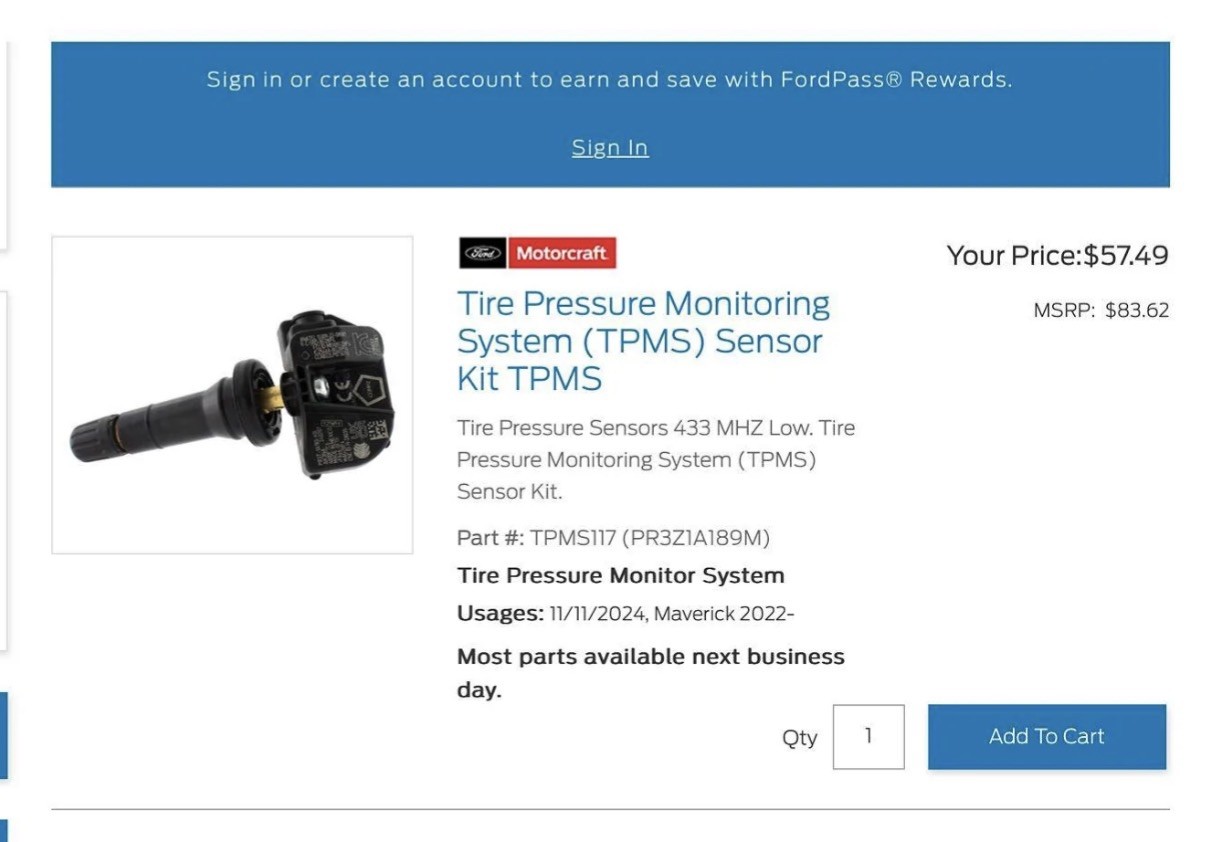 - Type: Tire Pressure Monitoring System (TPMS) Sensor