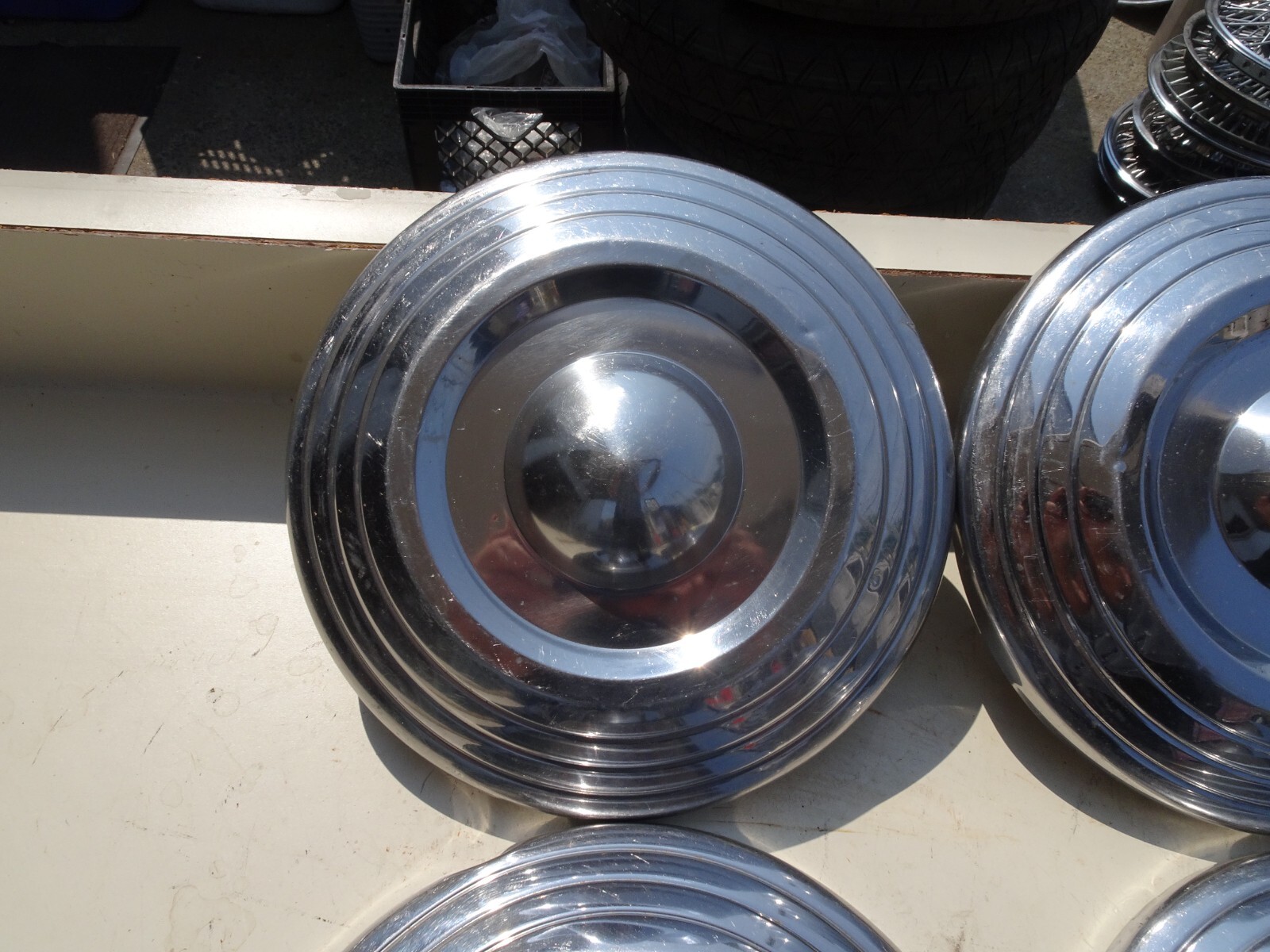 **Description** **Make:** (1957 1961 CHRYSLER POVERTY HUBCAPS Location: MD6 **Condition:** This is a used cap. All of the clips and mounting tabs are pictured and in good condition unless otherwise noted. **Pictures:** Pictures of the actual item **Payment & Shipping** **Payment:** After purchasing, please pay instantly with any major credit card through PayPal. Payment or contact not received within 3 business days of sale will be treated as non-paying bidders. **Sales Tax:** Pennsylvania Residents are subject to 8% sales tax (Philly loves you back) **Domestic Shipping:** Fedex Ground shipping to continental US only. USPS to Hawaii, Alaska and Puerto Rico with a surcharge. We ship out within 1 business day. Please contact us for rush processing and expedite shipping options. Tracking information will be e-mailed once the item is shipped. Buyer is responsible for paying import duties and taxes assessed by any foreign country. **Returns & Refunds:** 30 day Money Back Guarantee. We will fully refund once the item is returned within 30 days in the same condition as you received it. Note that if you mount the item to the vehicle, you'll no longer be eligible for the Money Back Guarantee. The product must be returned in the same condition it was received. Buyer is responsible for return shipping if is not our error. If you receive an item that does not match the description as listed we will incur charges for return shipping. **About AAAA Hubcap Heaven** AAAA Hubcap Heaven is the premier hubcap and wheel dealer in the Delaware Valley. Count on us to provide you with quality wheels, hubcaps, and center caps at reasonable prices. Everything is in stock and will ship same day if ordered by 2pm EST. Contact us about our huge used and classic inventory. **AAAA Hubcap Heaven, Inc** 5107 Umbria St. Philadelphia, PA 19128 Buy, Sell, Trade Wheel Covers, Hubcaps, Wheels Trim Rings, Center Caps Wheel Repair