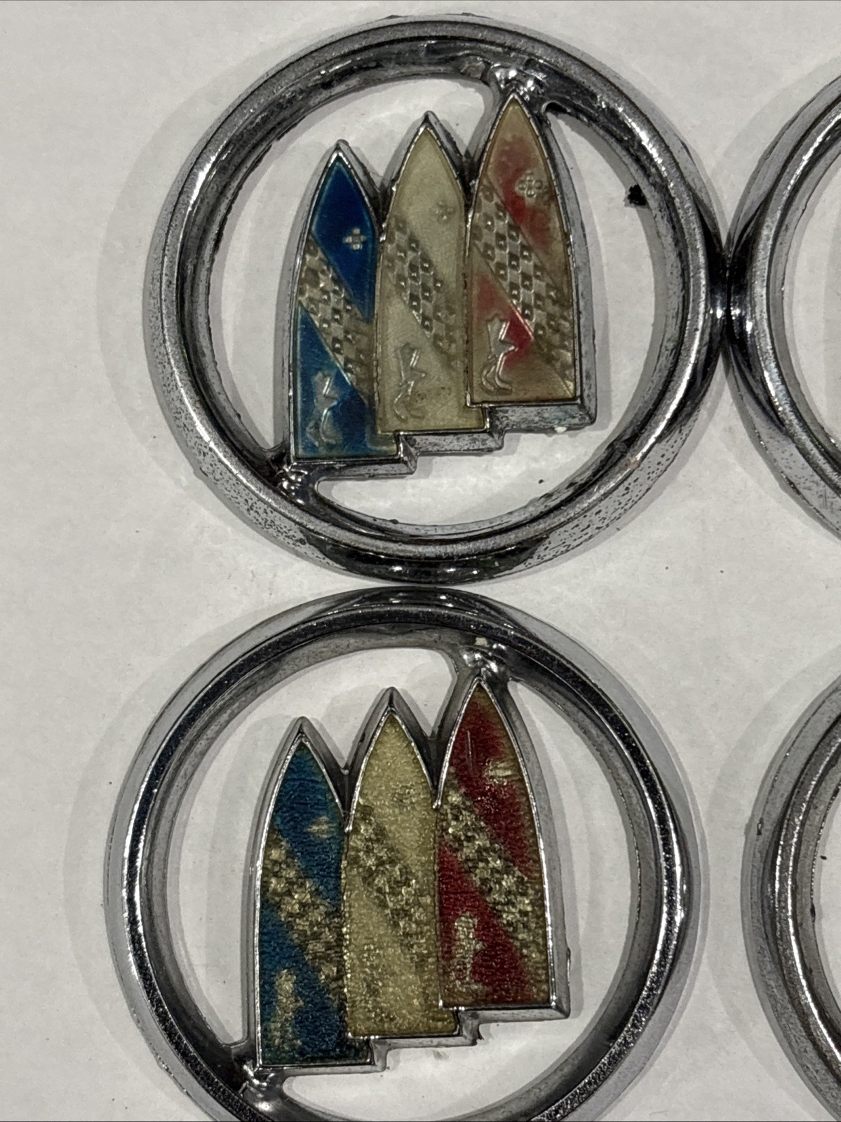 4-Vintage Buick Pillar Emblem Buick Sail Panel Metal 2". Condition is Used. Shipped with USPS Ground Advantage.