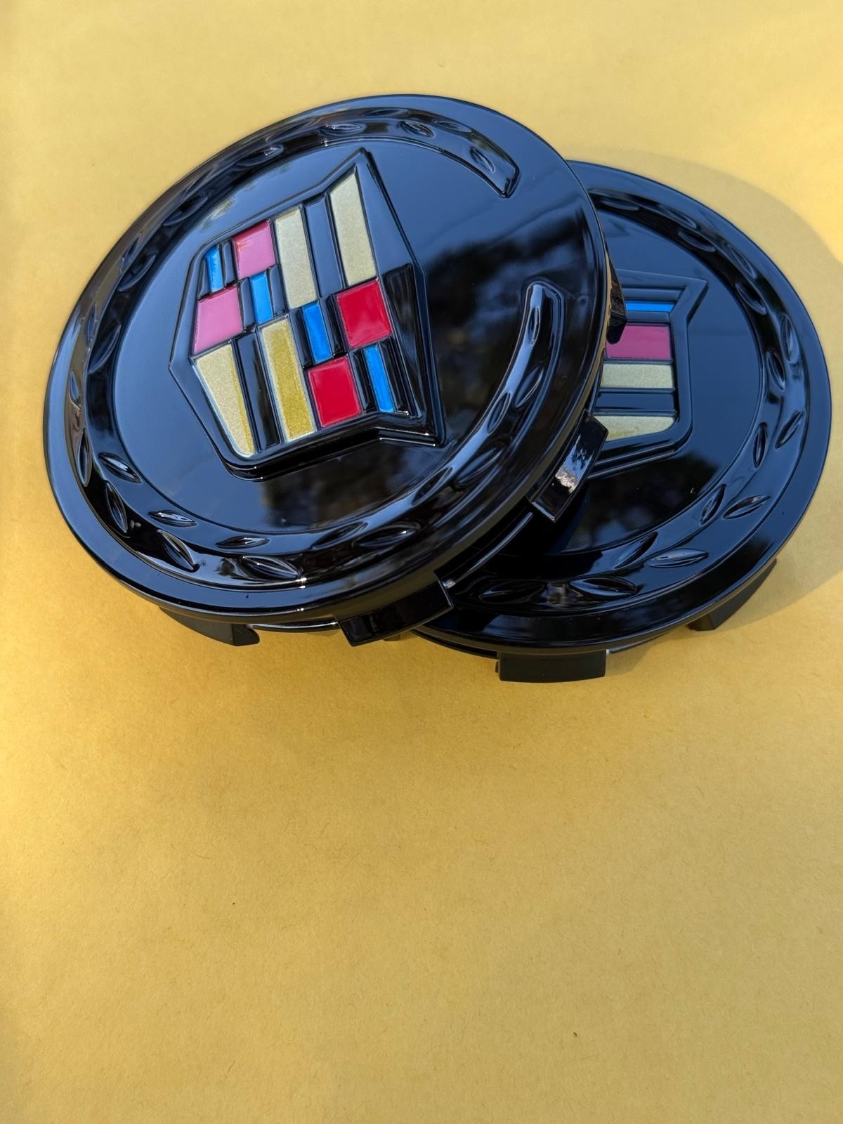 4 X Cadillac Black Center Caps 83MM, Satisfaction Guaranteed!